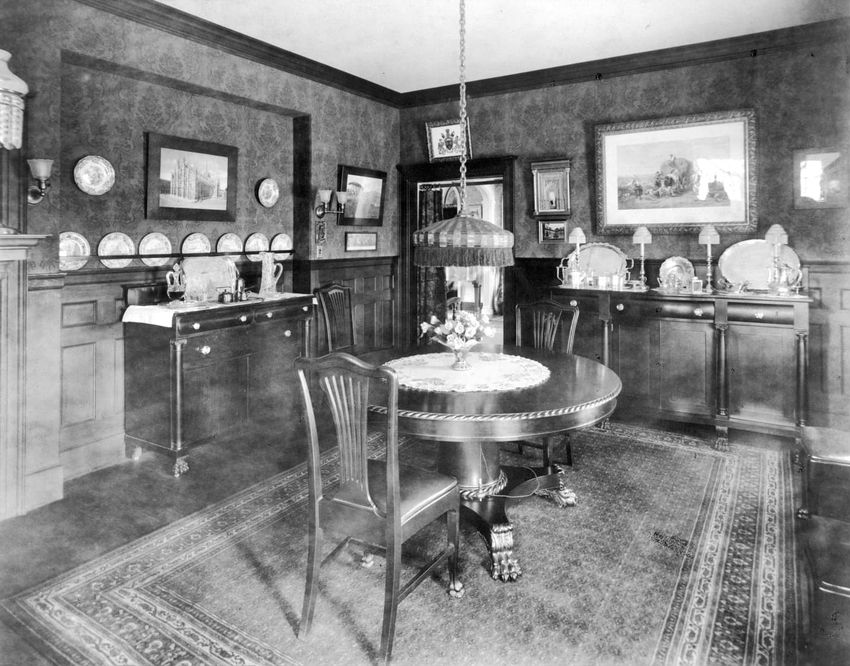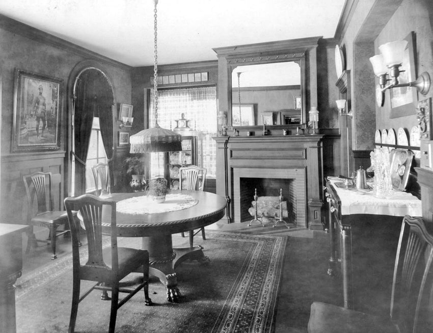 Interior photograph of the dining room in the Foster House, 7 Kirkland St., Cambridge, Mass.