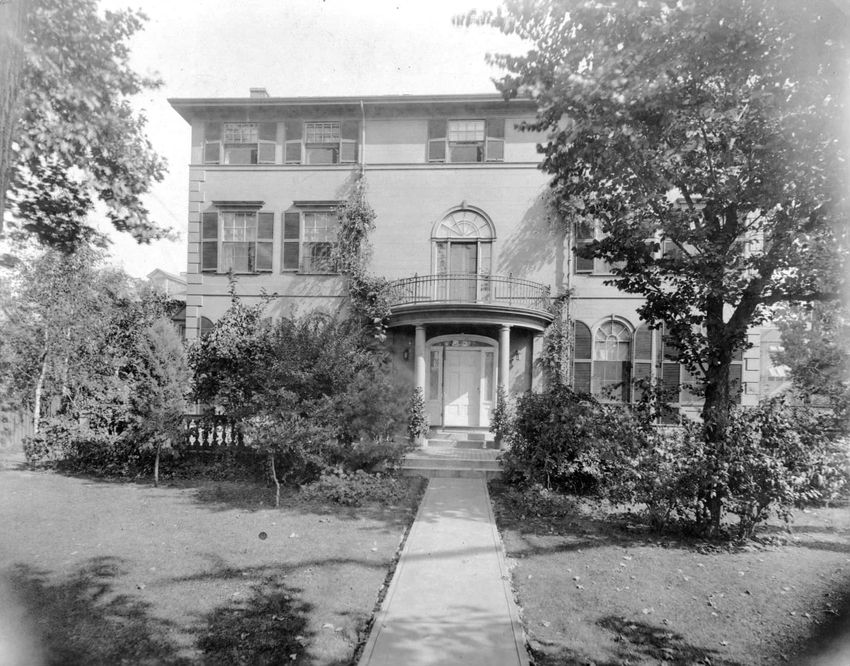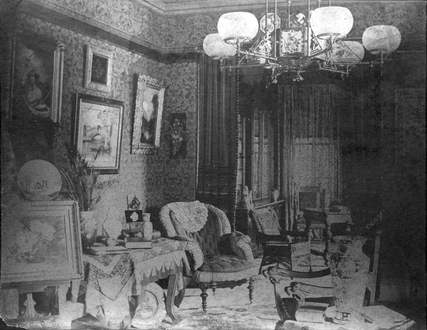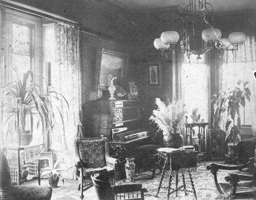 Interior photograph of the front parlor in a residence in Cambridge, Mass.