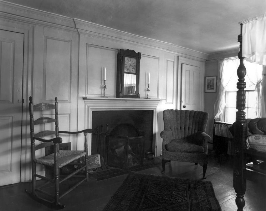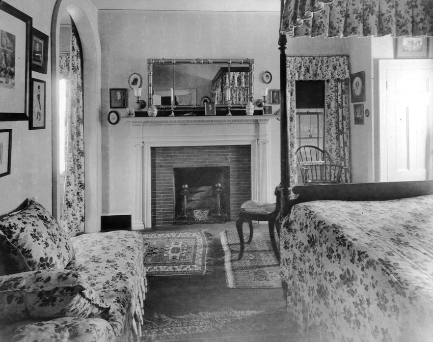 Interior photograph of a second floor bedroom in the Apthorp House, Linden St., Cambridge, Mass.
