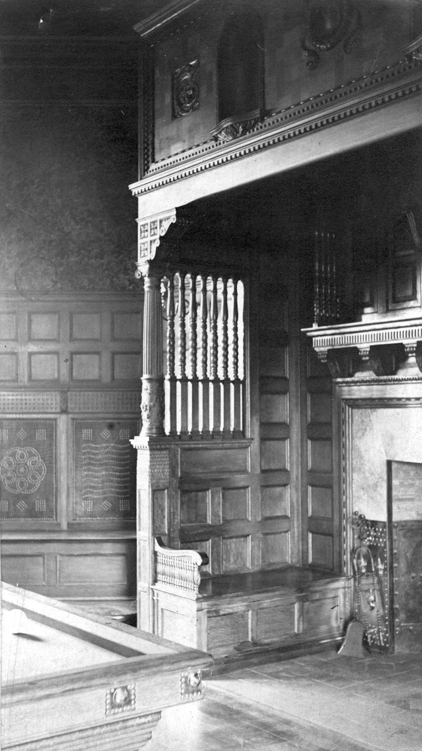 Interior photograph of the billiard room in 48 Highland St., Cambridge, Mass.