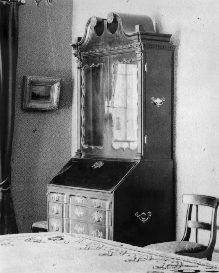 Interior photograph of the north west bedroom in the F.H. Bigelow House, 4 Channing St., Cambridge, Mass. The photograph is of the Shearton (family) secretary.