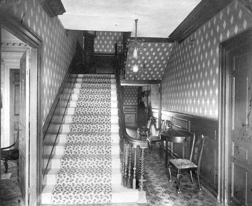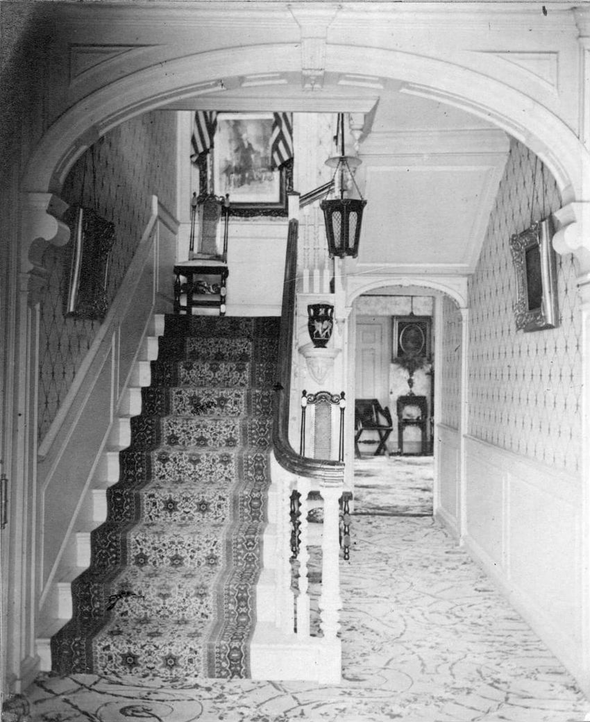 Interior photograph of the entrance hall in 11 Powell St., Brookline, Mass.