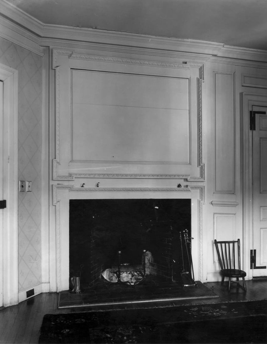 Interior photograph of a fireplace in the Apthorp House, Linden St., Cambridge, Mass.