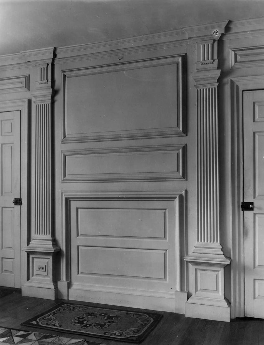 Interior photograph of the Belcher-Vassal House, 94 Brattle St., Cambridge, Mass. The photograph shows an architectural detail of wall moulding.