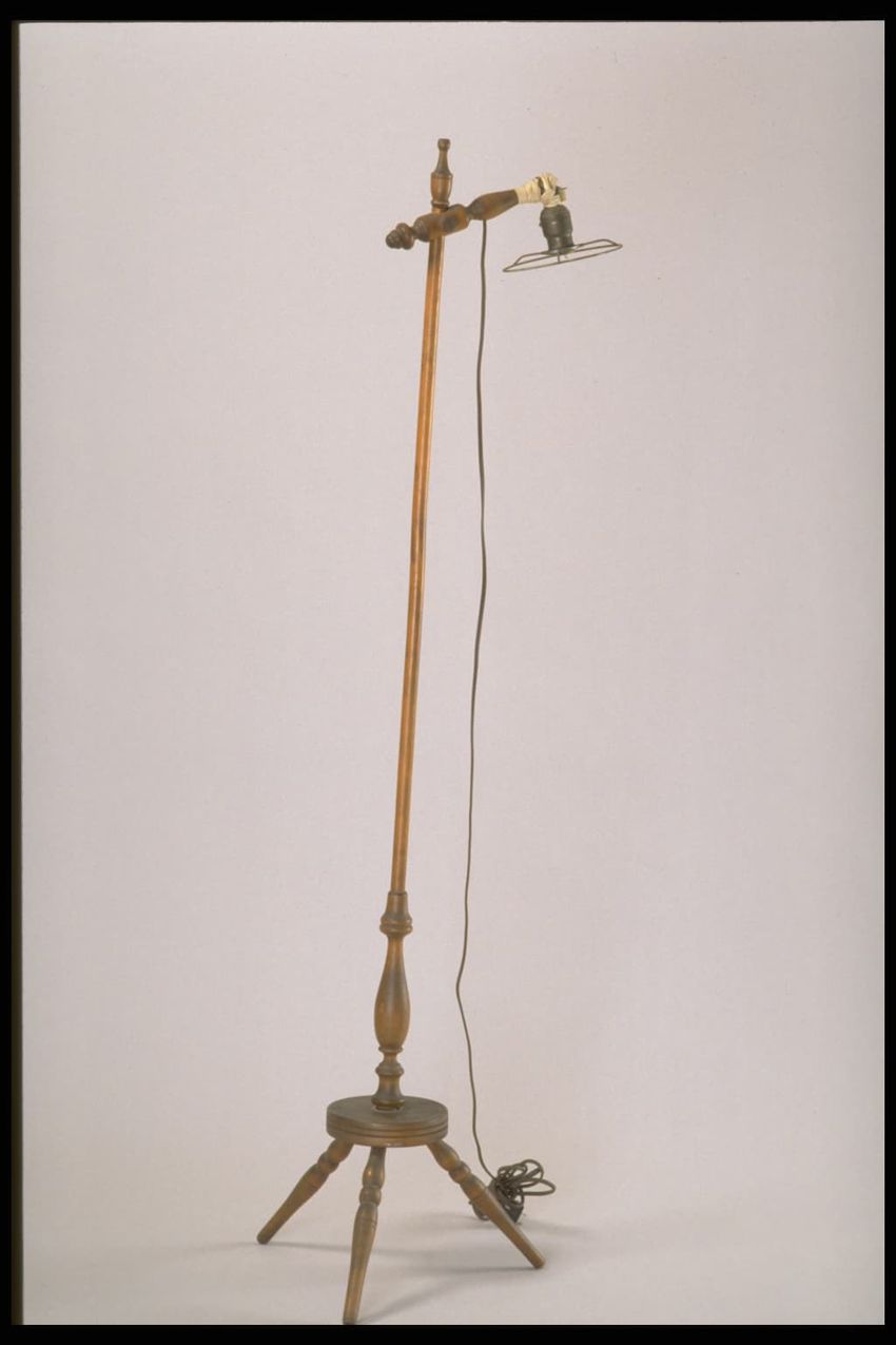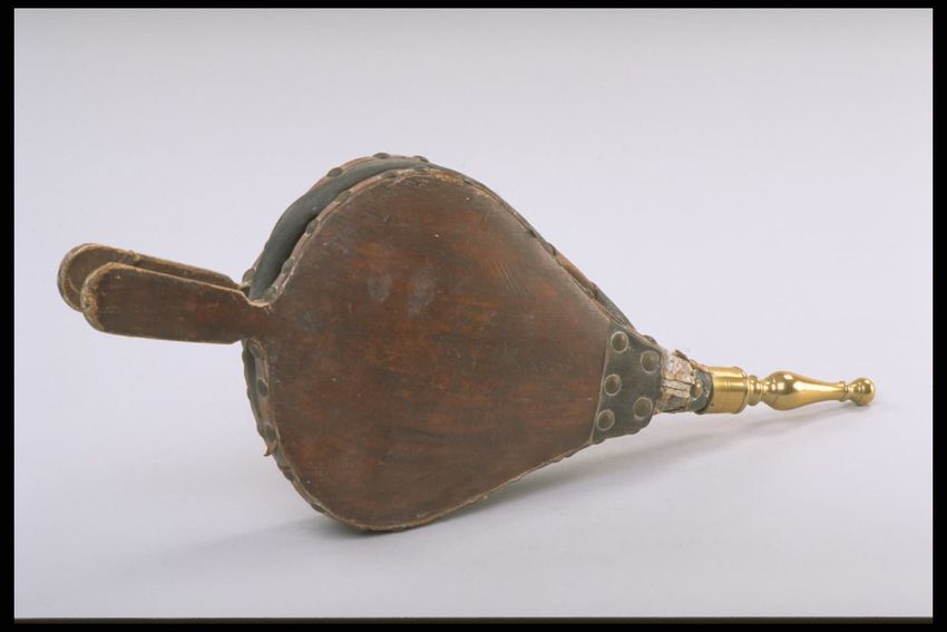 brass (alloy), leather, metal, pine (wood)