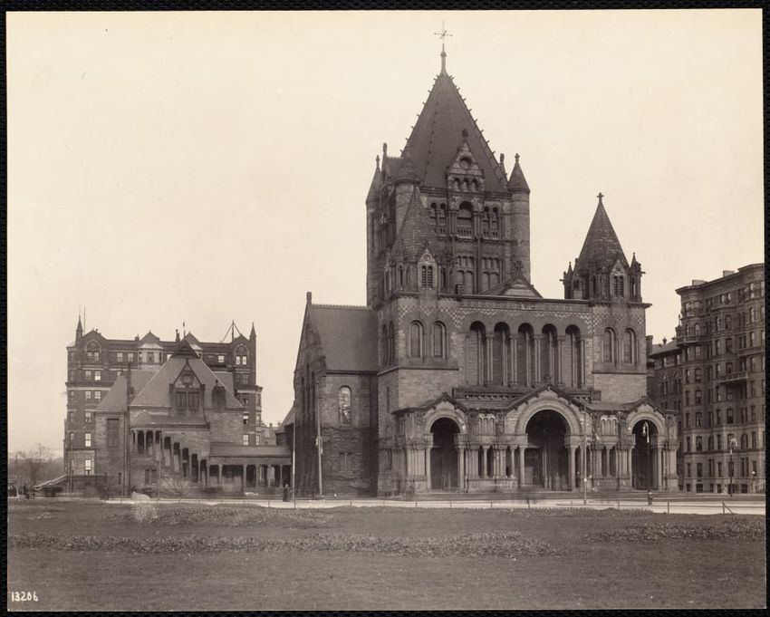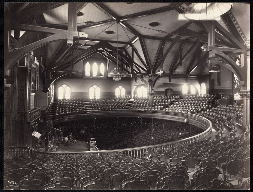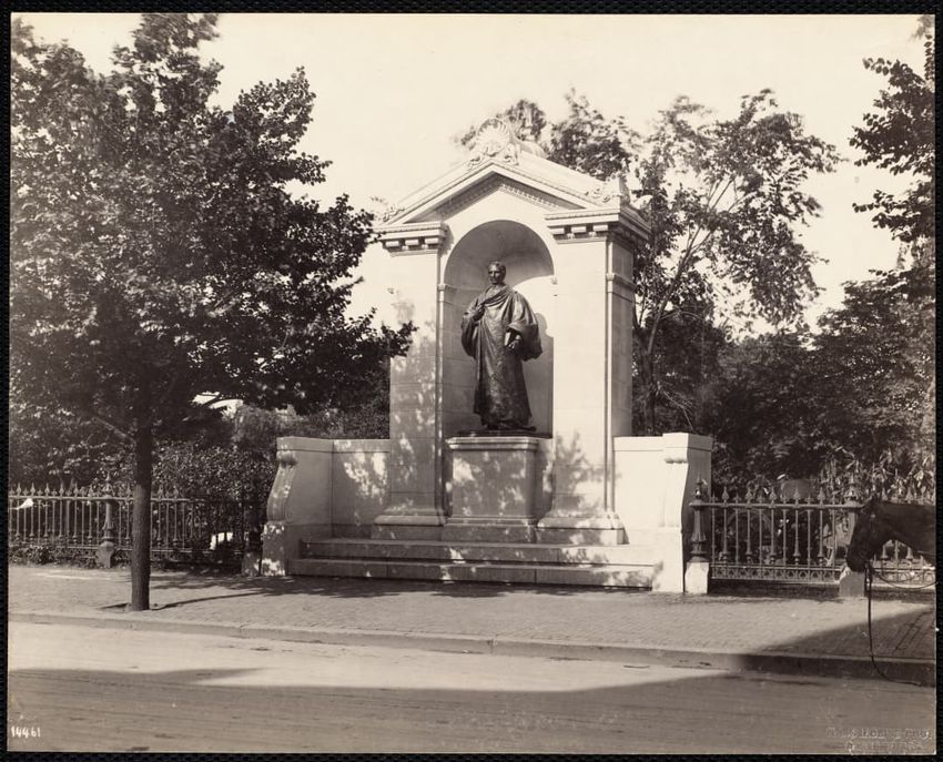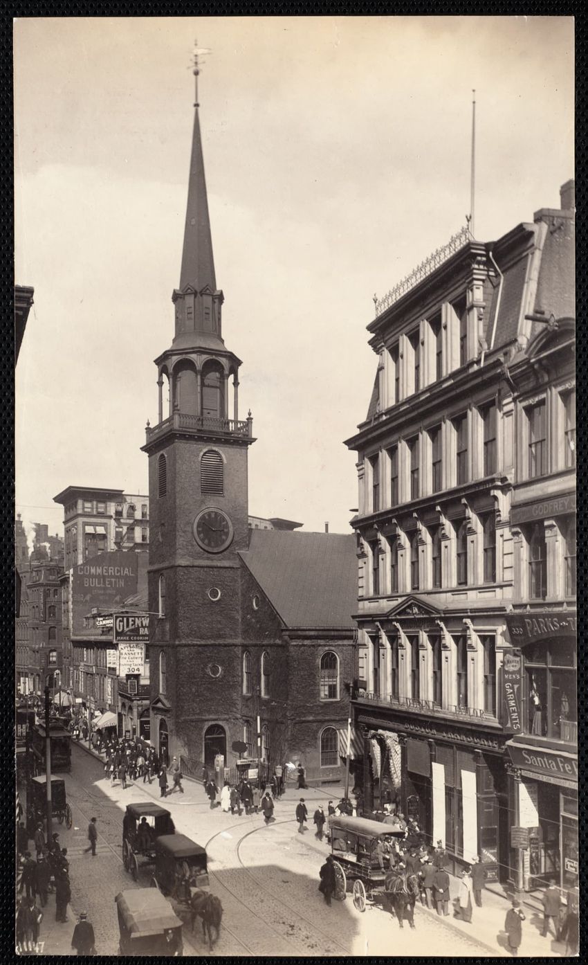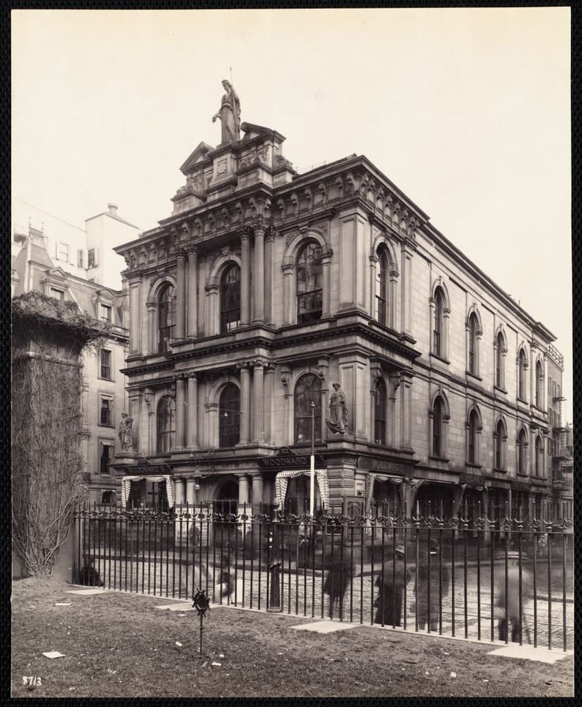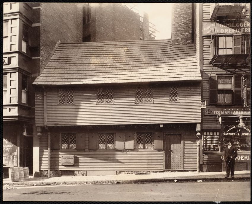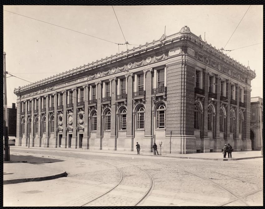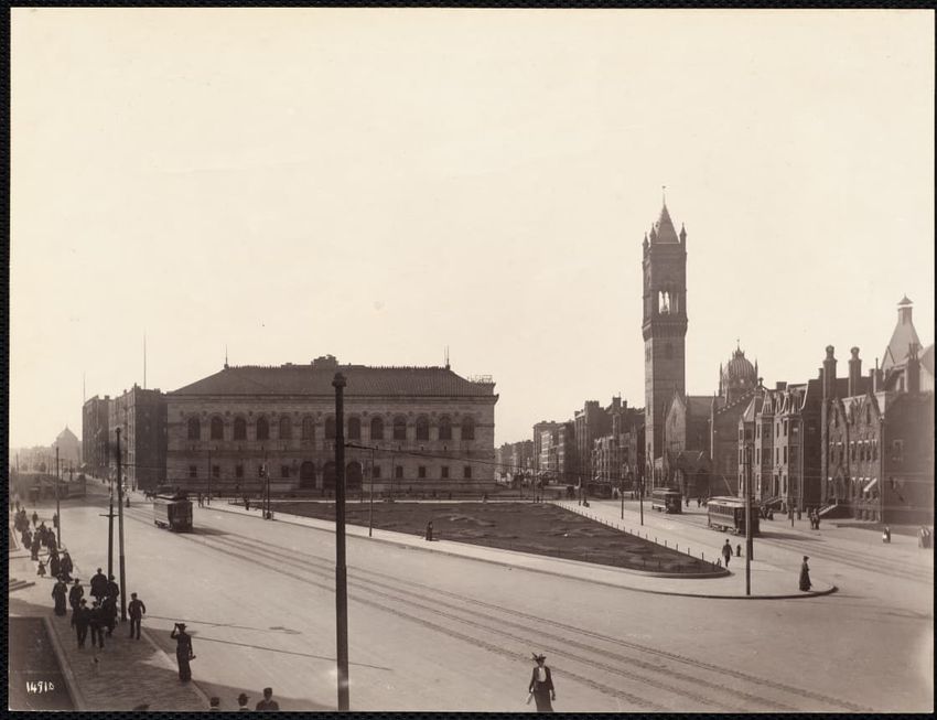 The Majestic Theatre, with a large sign on the roof, can be seen in this image. To the right, and separated by Van Rensselaer Place, is Lincoln and Vander Pyl, pianos, at 211 Tremont. Below them at street level is John Cimerblatt, cigars, at 215 Tremont Street.
