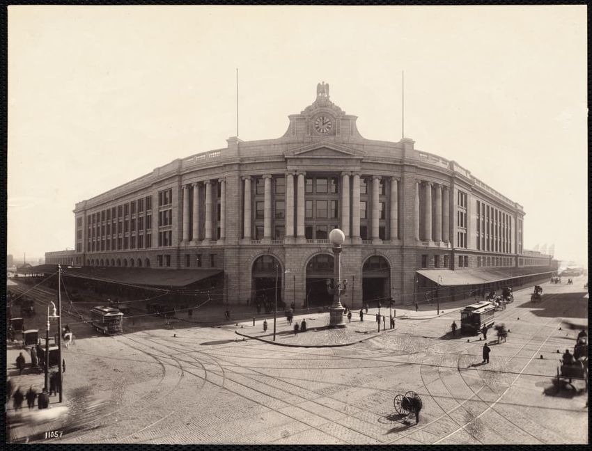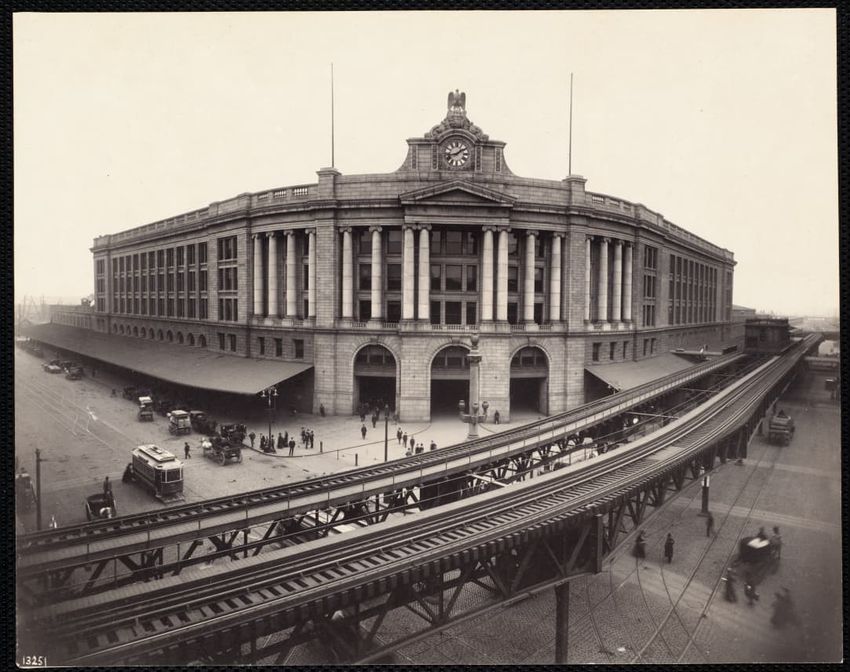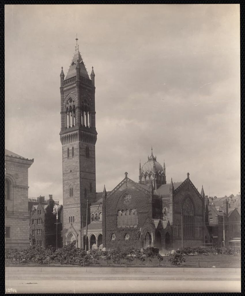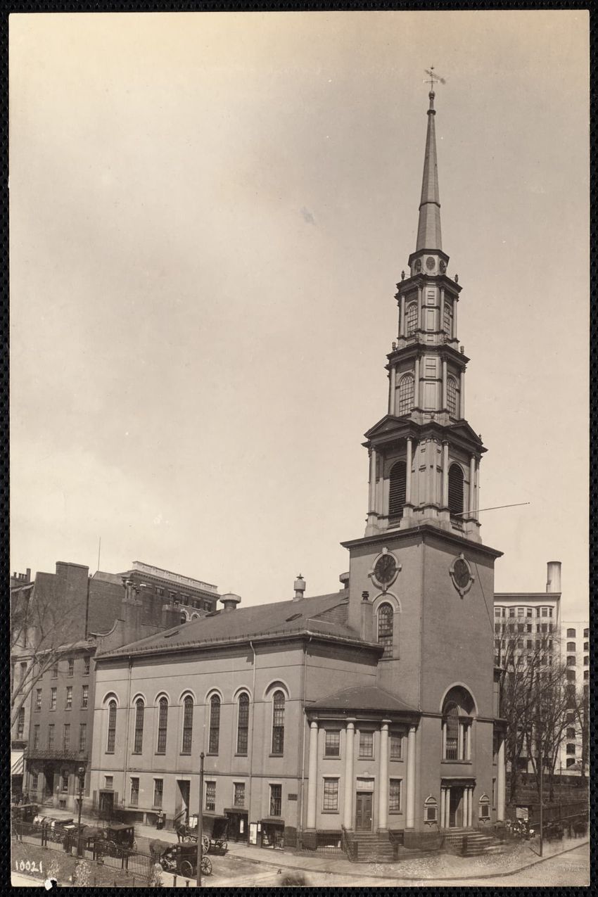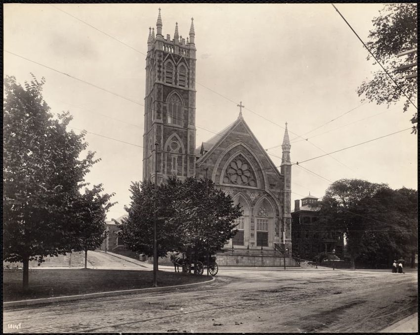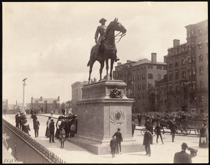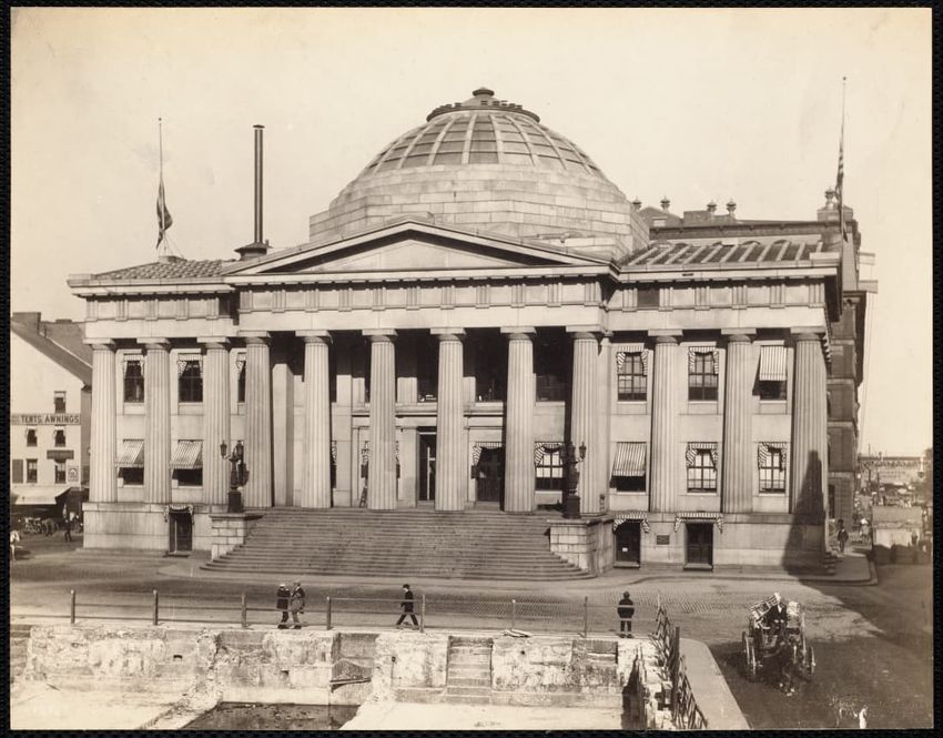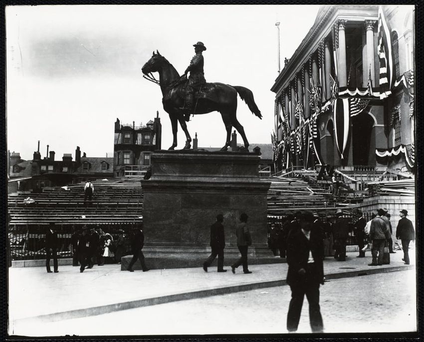 The Majestic Theatre, with a large sign on the roof, can be seen in this image. To the right, and separated by Van Rensselaer Place, is Lincoln and Vander Pyl, pianos, at 211 Tremont. Below them at street level is John Cimerblatt, cigars, at 215 Tremont Street.