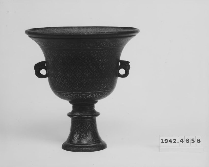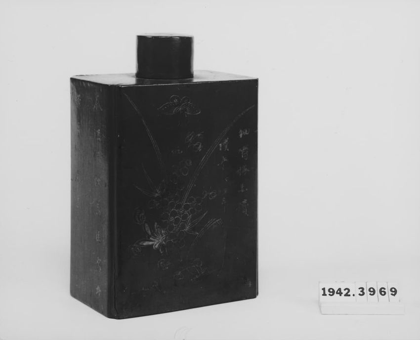 Semi-repeating scenic pattern of a naturalistic depiction of flowers, foliage, blooming branches, butterflies and exotic birds on a celadon green ground.
