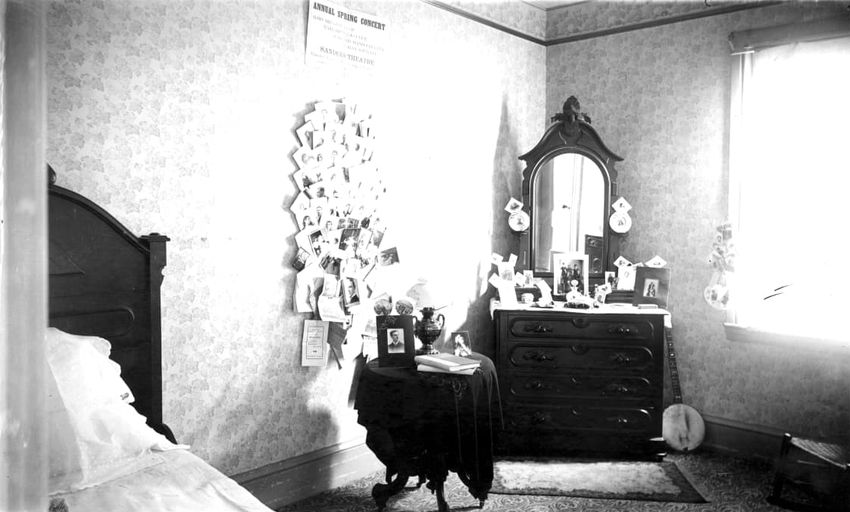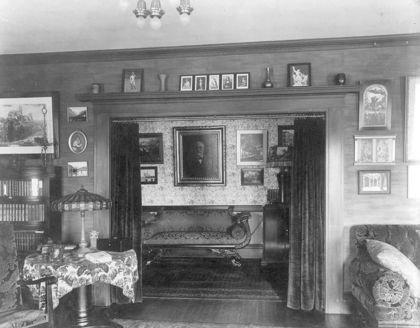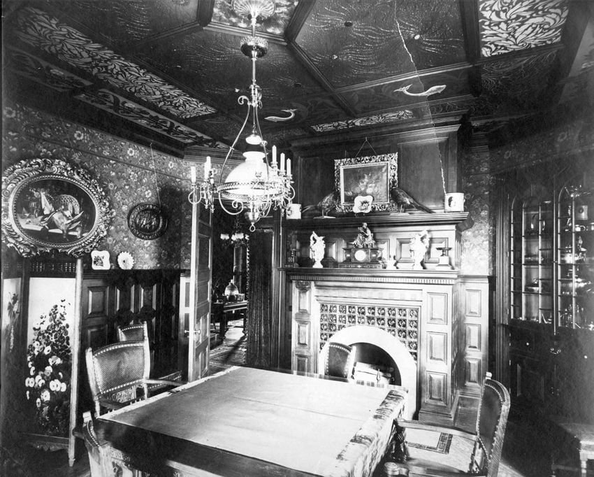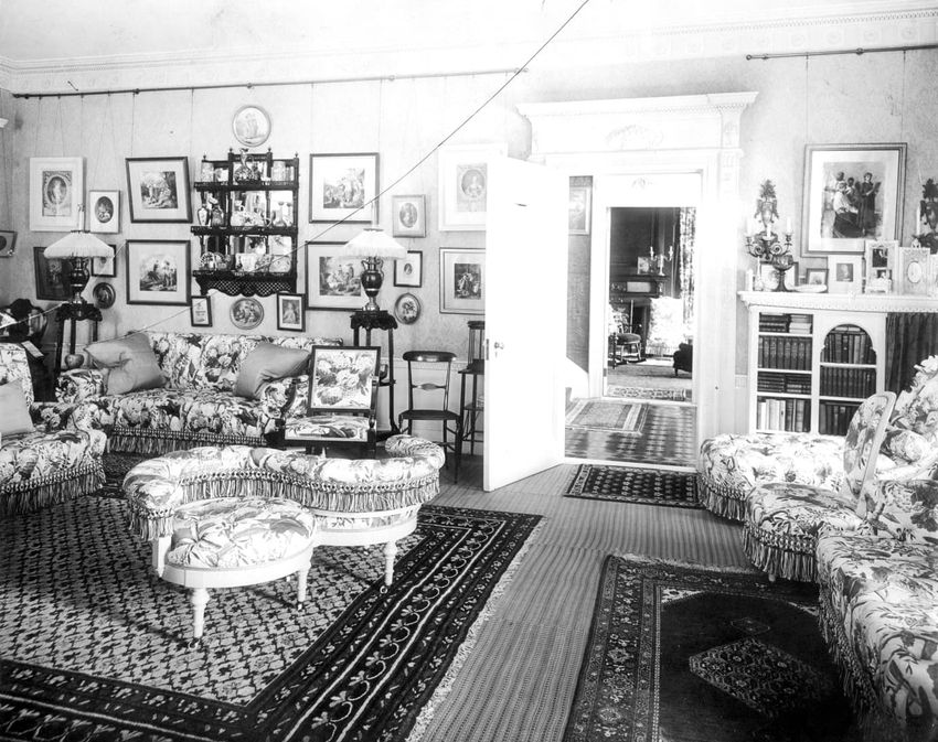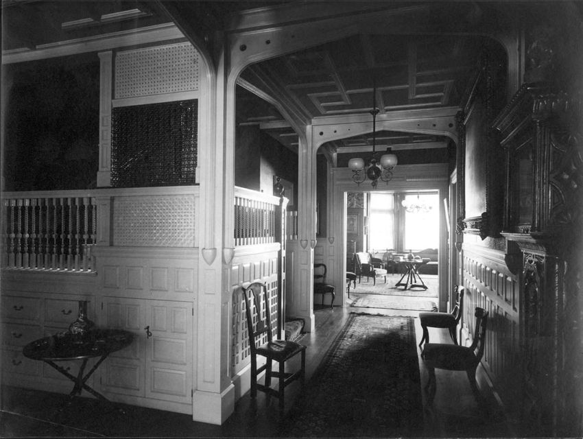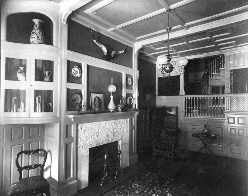 Interior photograph of the dormitory sitting room of Alfred Gwynne Vanderbilt and William Fitz Hugh Whitehouse, Jr. at Yale University in New Haven, Connecticut. They graduated in 1899. Vanderbilt died when a German U-boat sank the ocean liner RMS Lusitania on May 7, 1915.