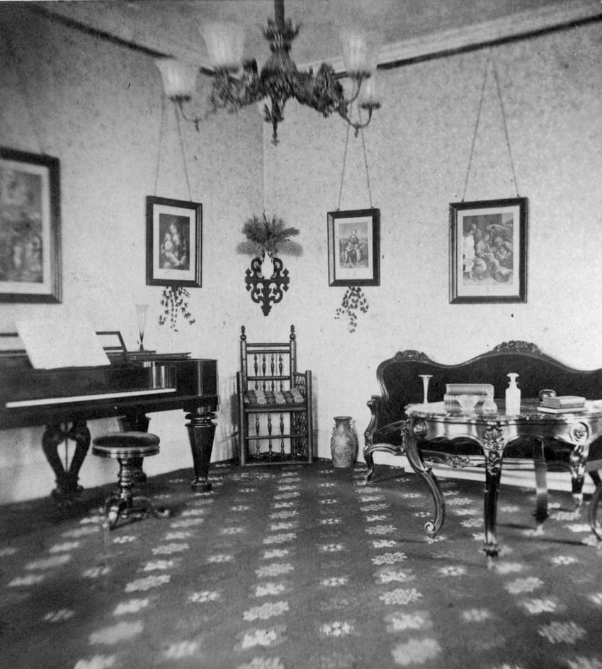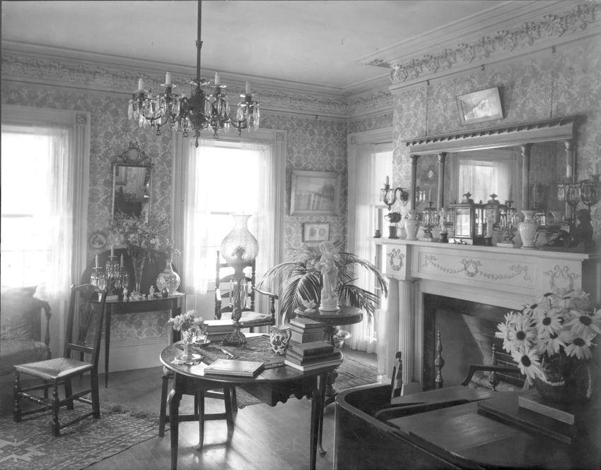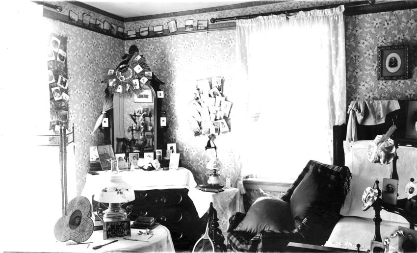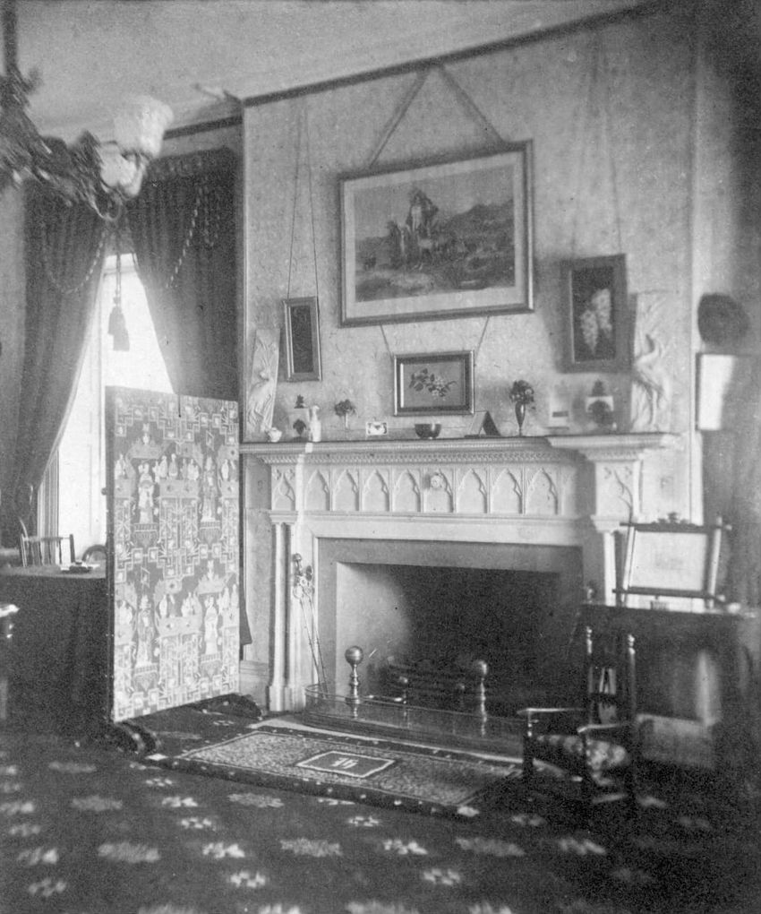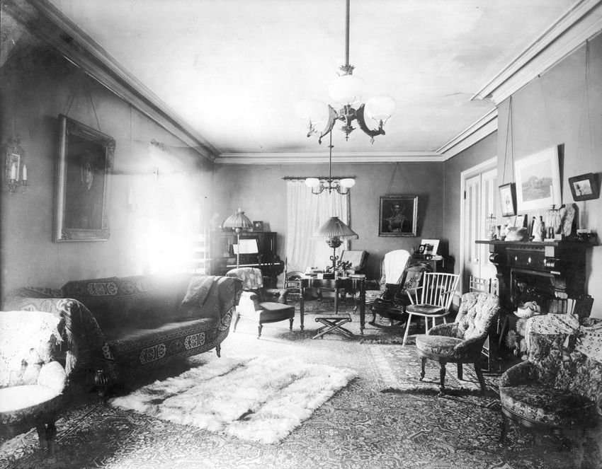 Interior photograph of the dormitory sitting room of Alfred Gwynne Vanderbilt and William Fitz Hugh Whitehouse, Jr. at Yale University in New Haven, Connecticut. They graduated in 1899. Vanderbilt died when a German U-boat sank the ocean liner RMS Lusitania on May 7, 1915.