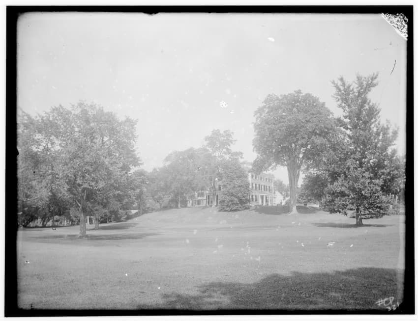 The image shows a cable ferry at Dinard, France. The ferry consists of a raised platform supported by a tall, open framework with cables, which extends over a body of water. Several people are standing on the platform, enclosed by a guardrail. In the background, there are buildings and a bridge visi...