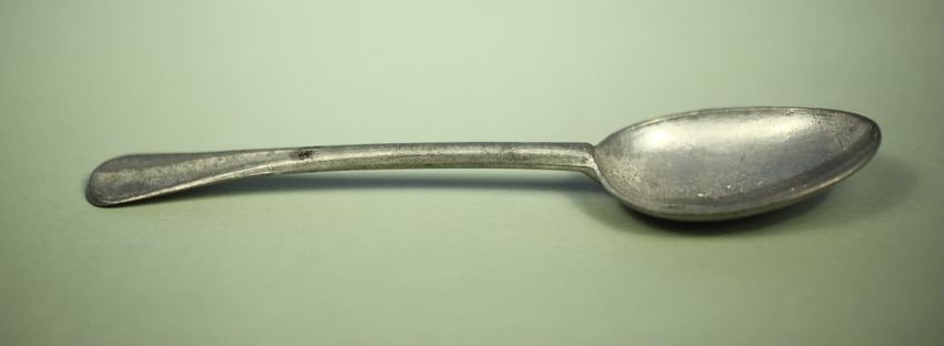 Shiny pewter spoon; re-cast, with no ornmentation.
