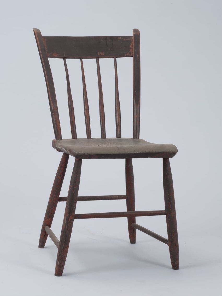 Thumb back, plank seat, brown with green seat.