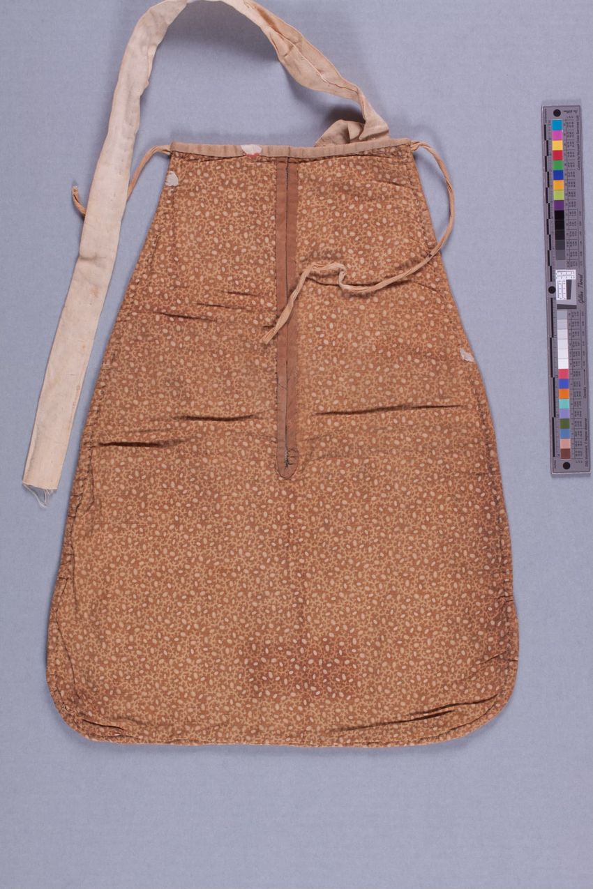 Brown and white printed cotton with floral pattern and a drawstring.