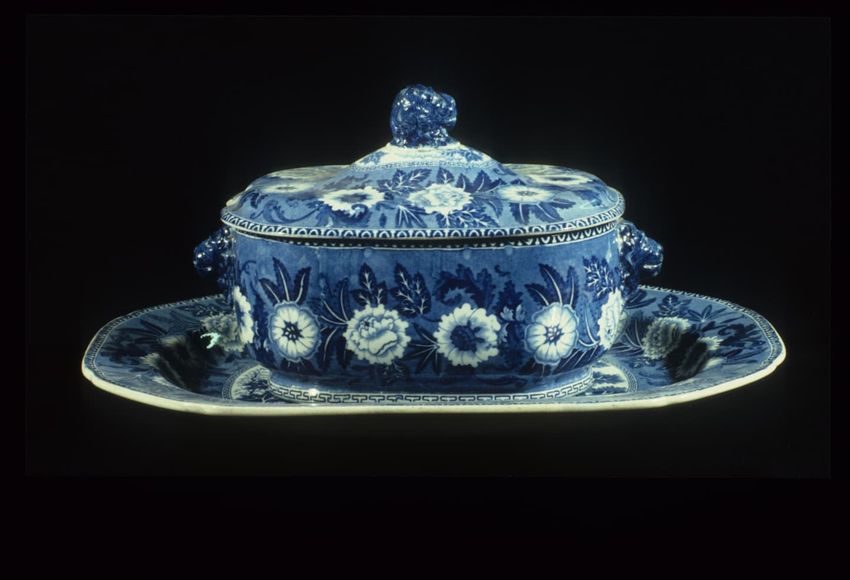 Blue and white transferprint on earthenware tureen (a) and lid (b)