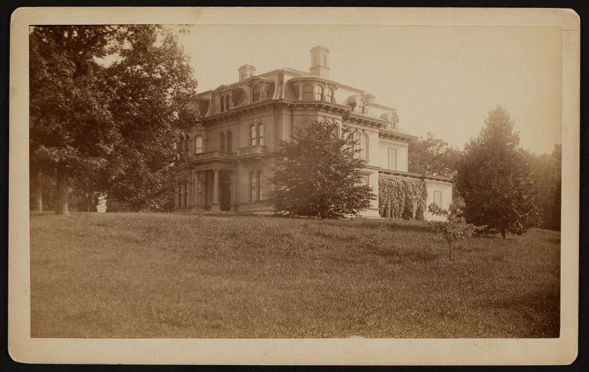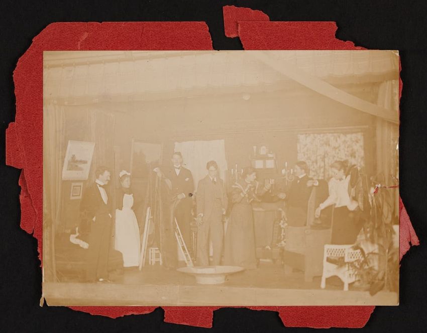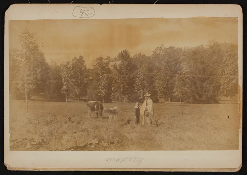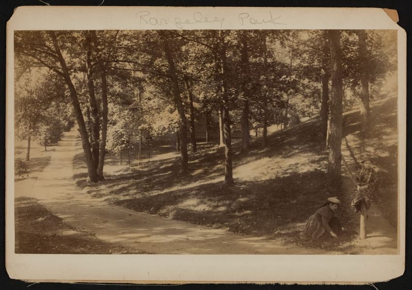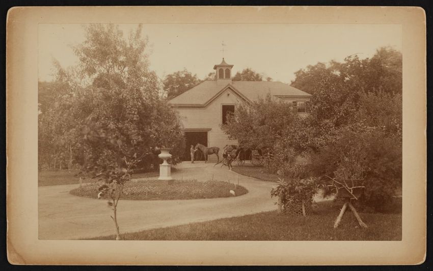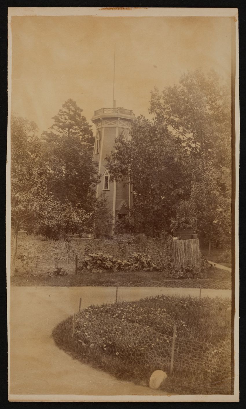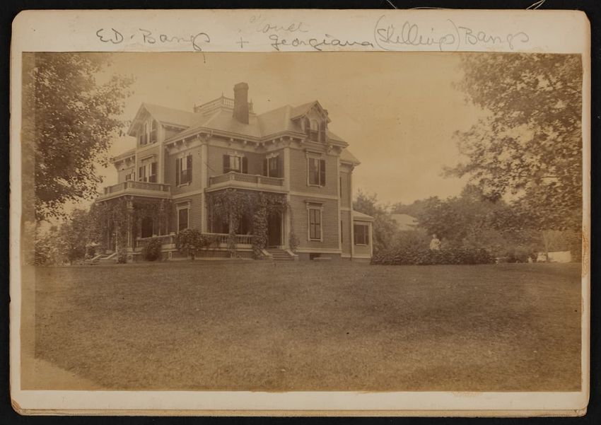 The image verso is inscribed "Rangeley Hall built by David Nelson Skillings on lower side lawn of E.D. Bangs, his Rangeley property, for community school house and social hall. Miss Mary Pickard Winsor was teacher in this school. Torn down about 1905-06. Property of Lesley Wilcox." An architectural ...