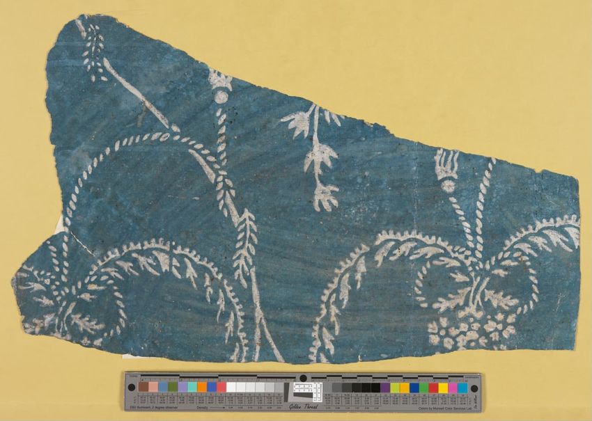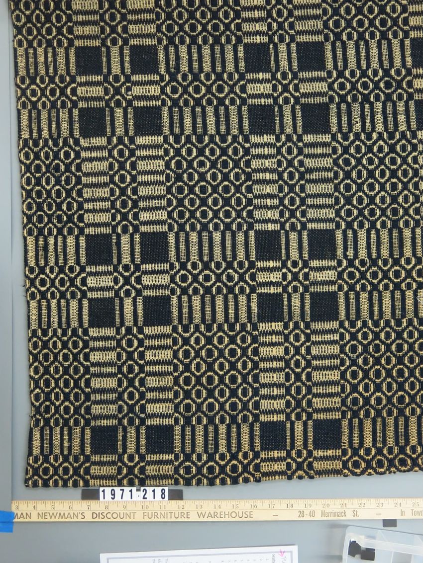 Alphabet/Verse sampler. Large scale geometric/ floral border, vertical rectangle, natural linen ground. Alphabets at top, verse at center, potted flowers below. Alphabets: #1-complete; #2- "A-W", missing "J"; #3-missing "J"; #4-complete; Numbers: "1-13".