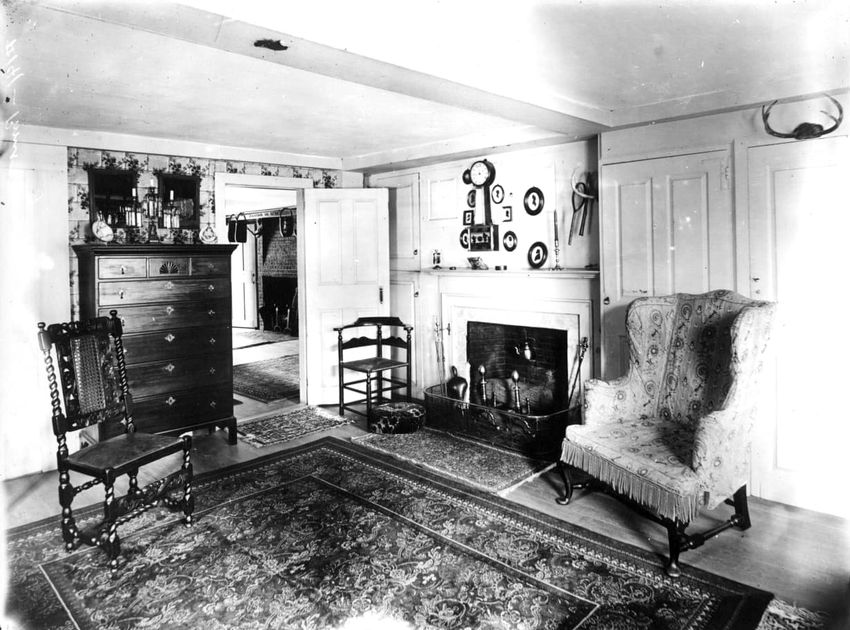 Interior photograph of the parlor (sitting room) in the Ward House, Shrewsbury, Mass.