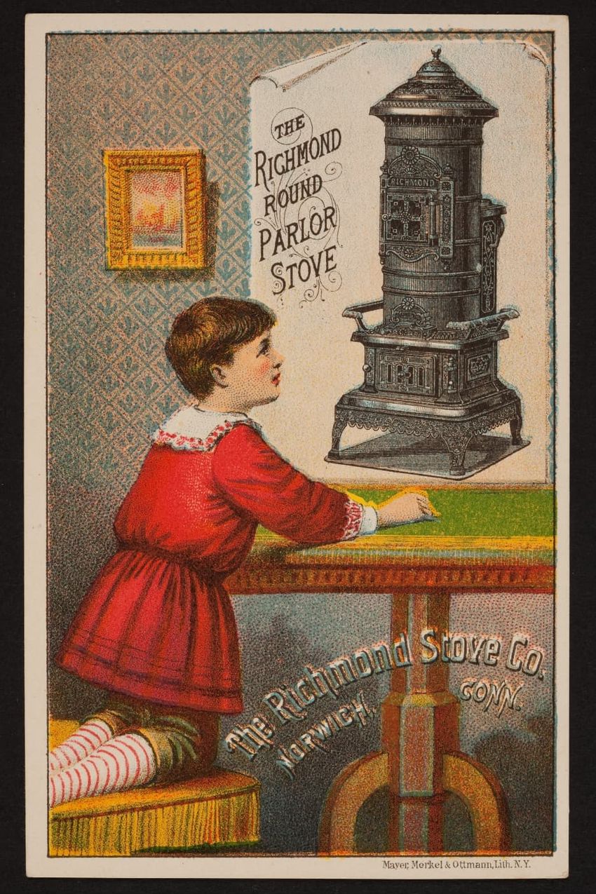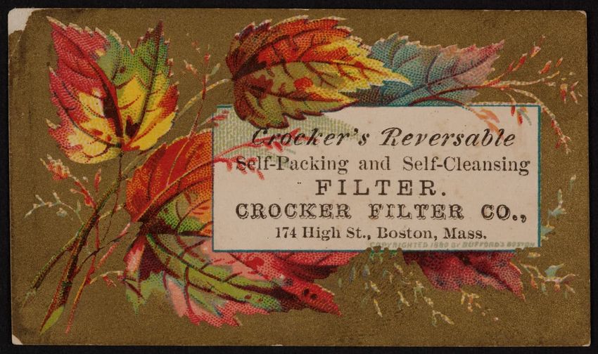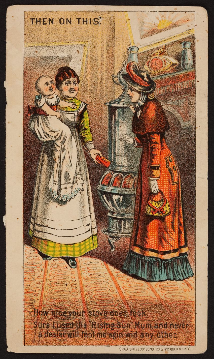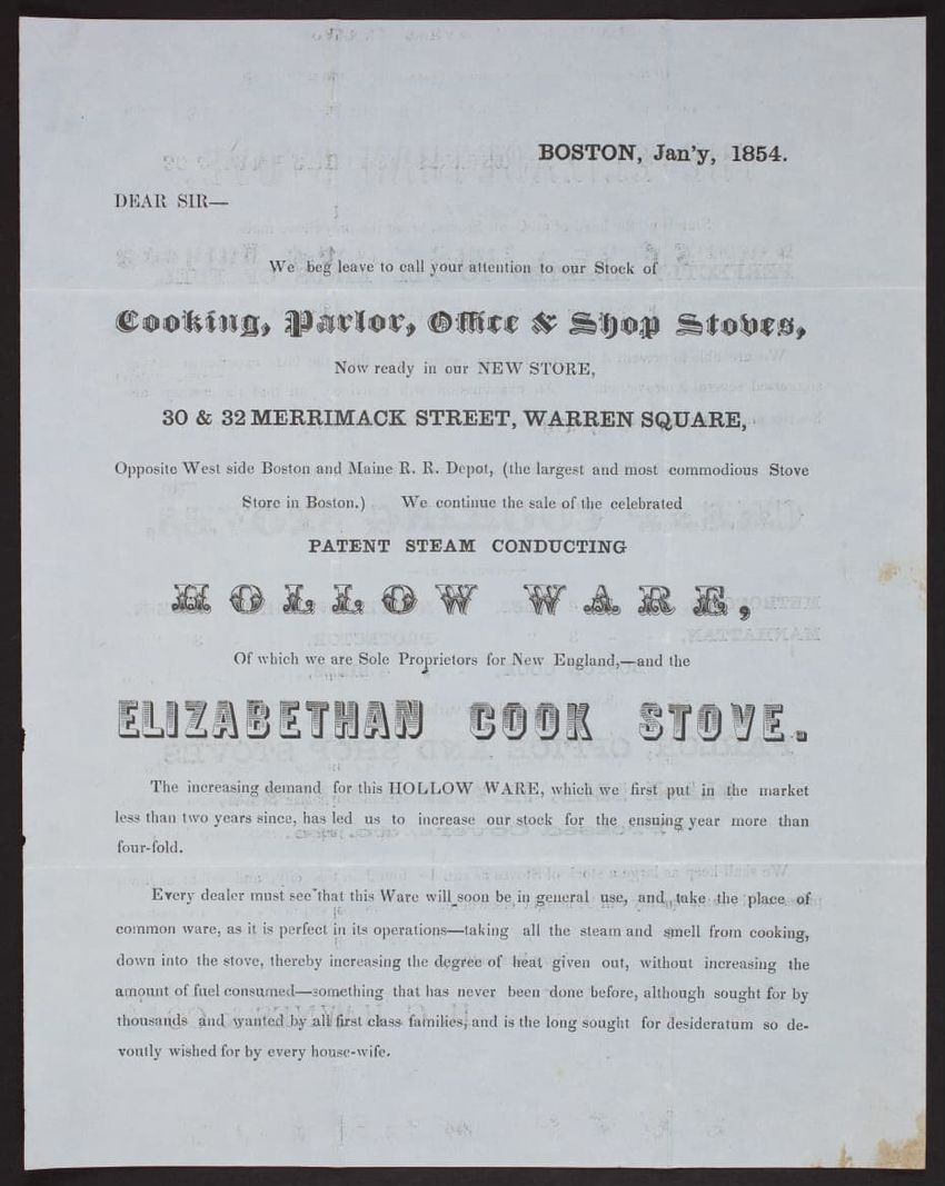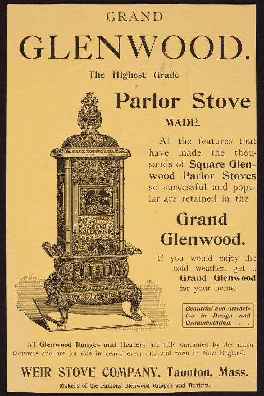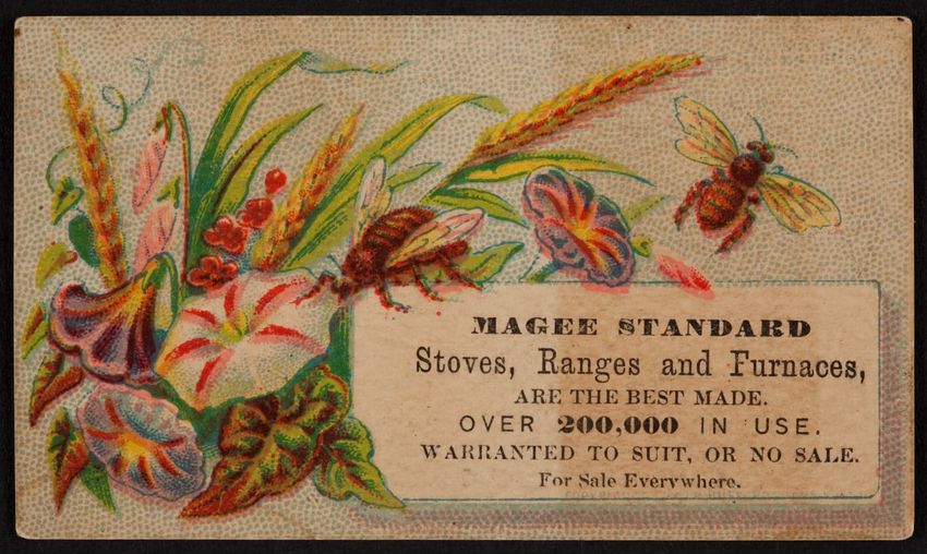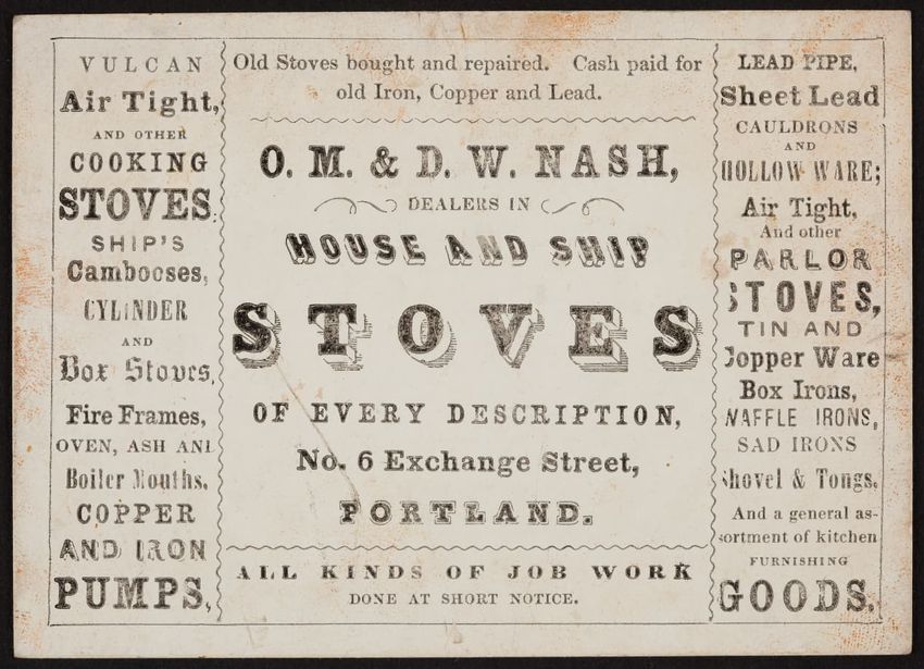 Within the illustrations are the names "Shaker Range Parlor Stoves," "New Tariff Ranges" and "Quaker & Shaker Ranges." The lower right hand side of the illustration reads "Boston, Chicago, San Francisco, Oakland, Calif." The card verso has an illustration of the Quaker Portable Range. The Taunton Ir...