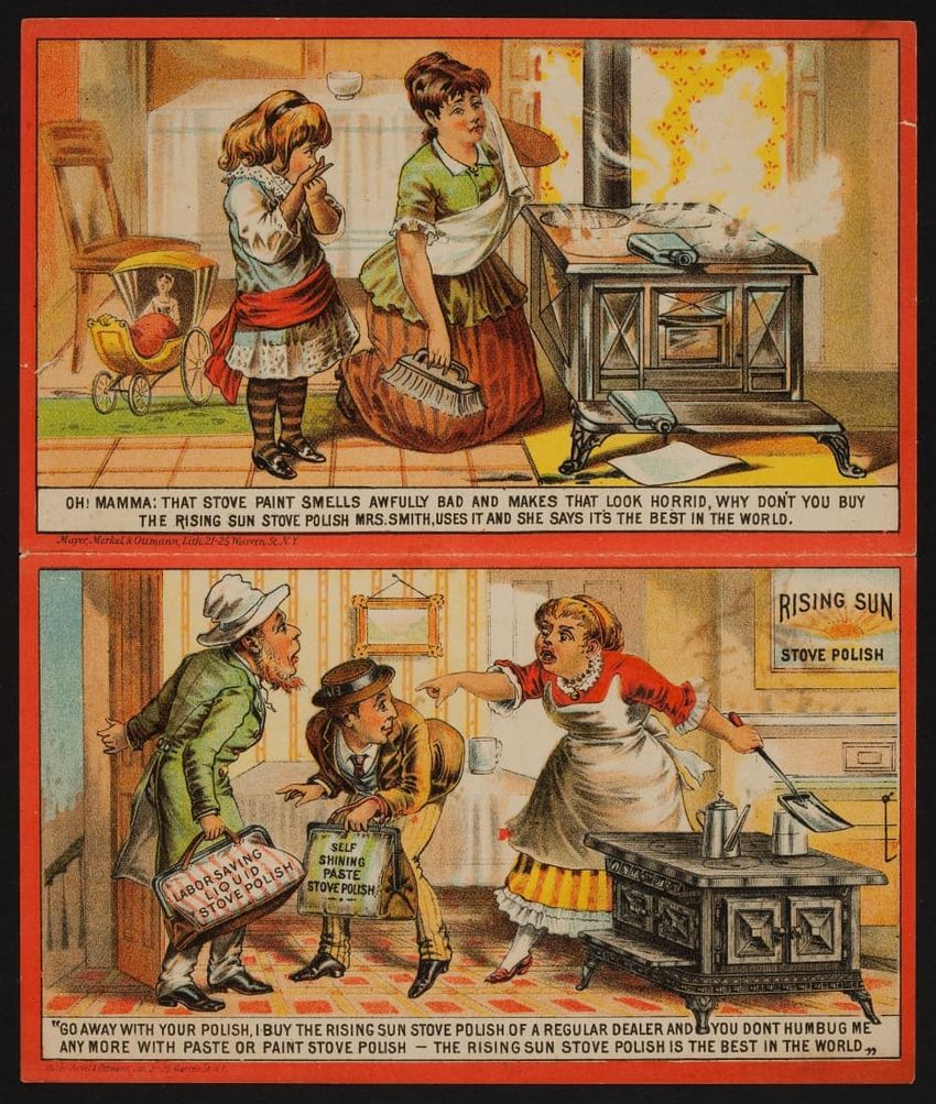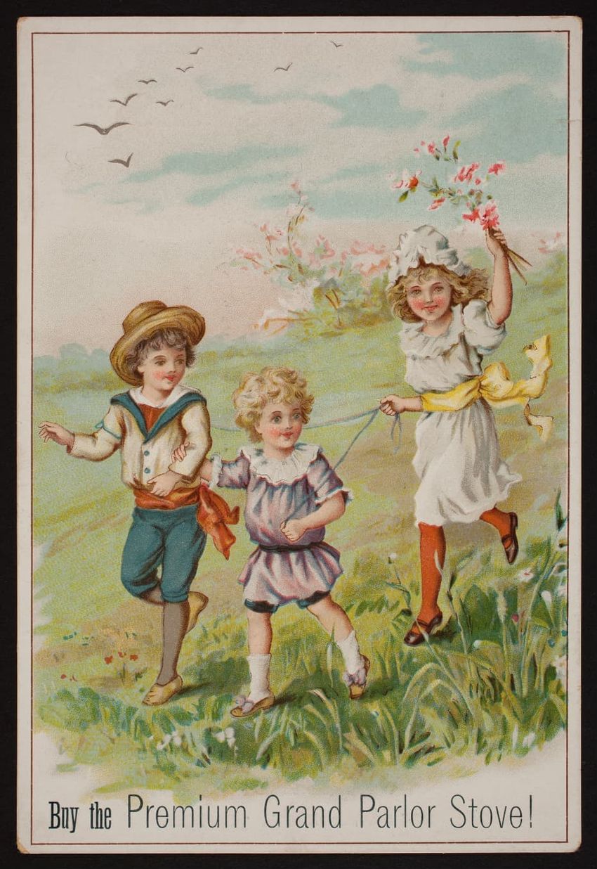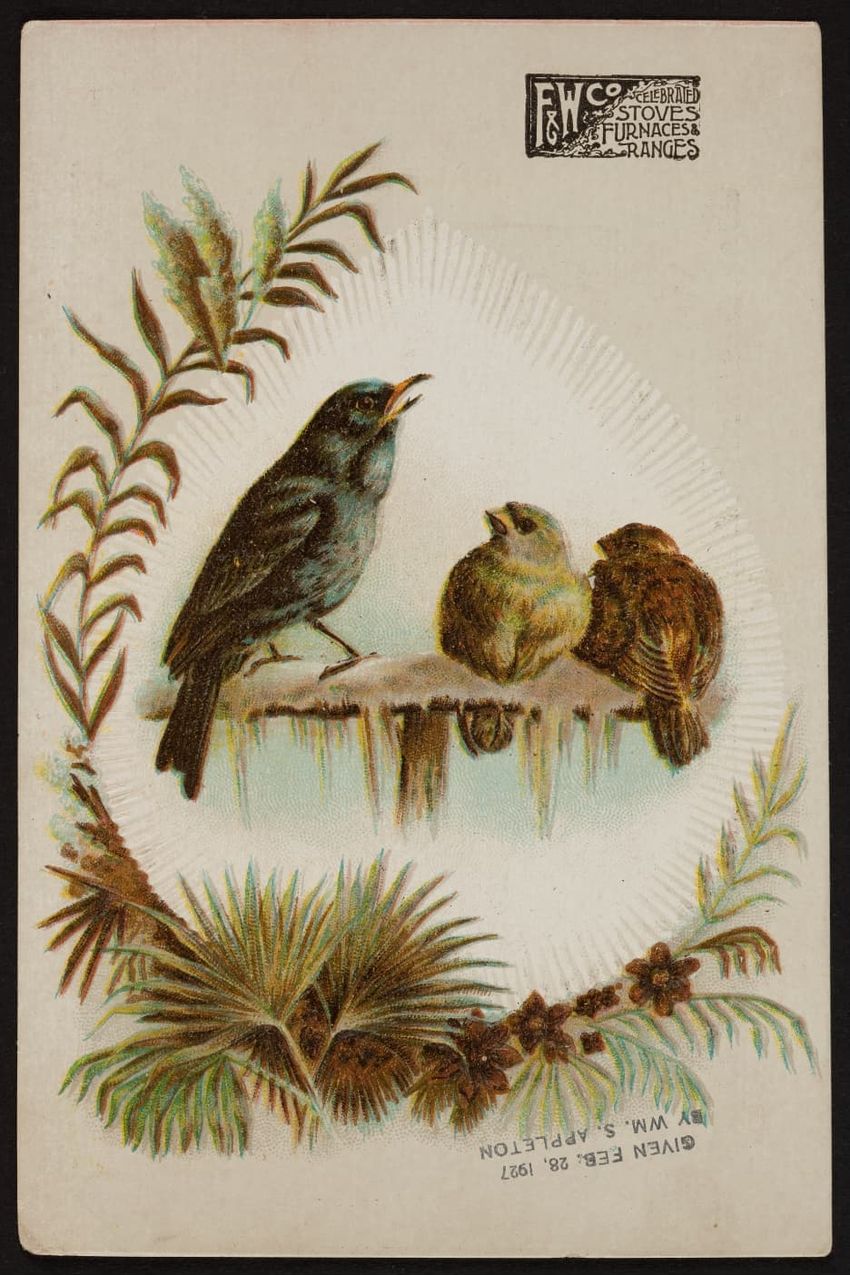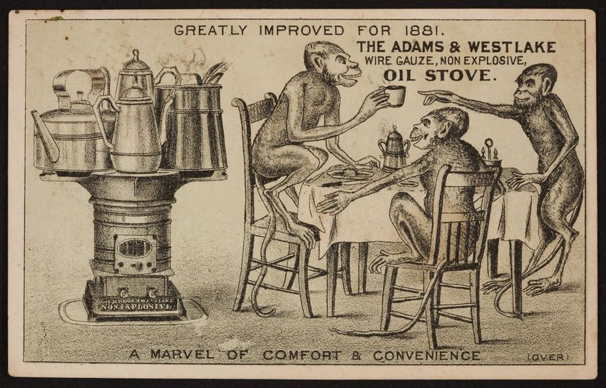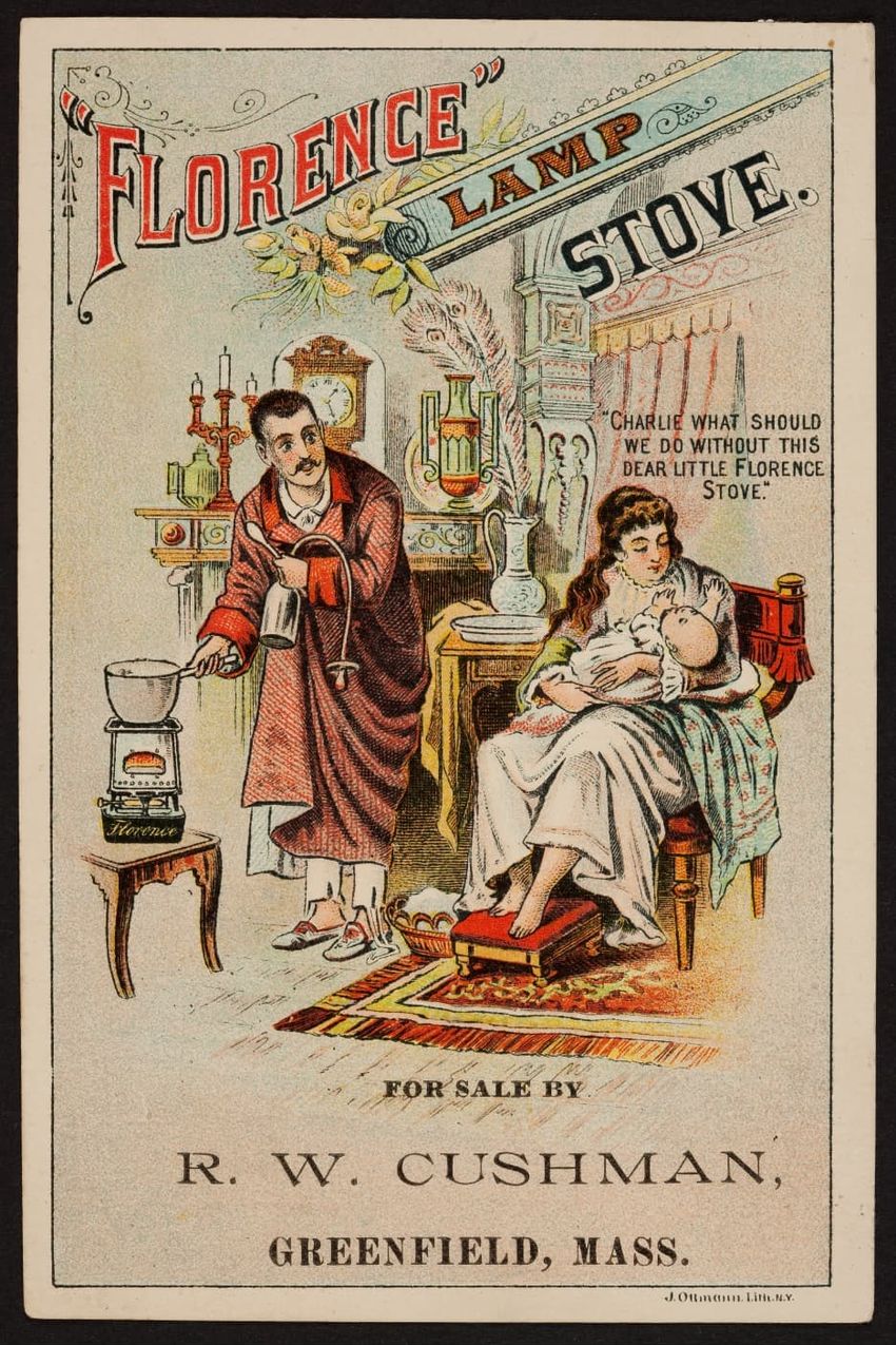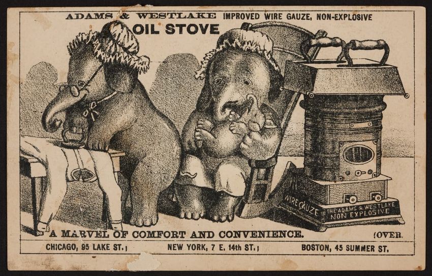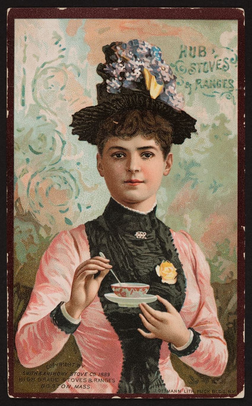 Within the illustrations are the names "Shaker Range Parlor Stoves," "New Tariff Ranges" and "Quaker & Shaker Ranges." The lower right hand side of the illustration reads "Boston, Chicago, San Francisco, Oakland, Calif." The card verso has an illustration of the Quaker Portable Range. The Taunton Ir...