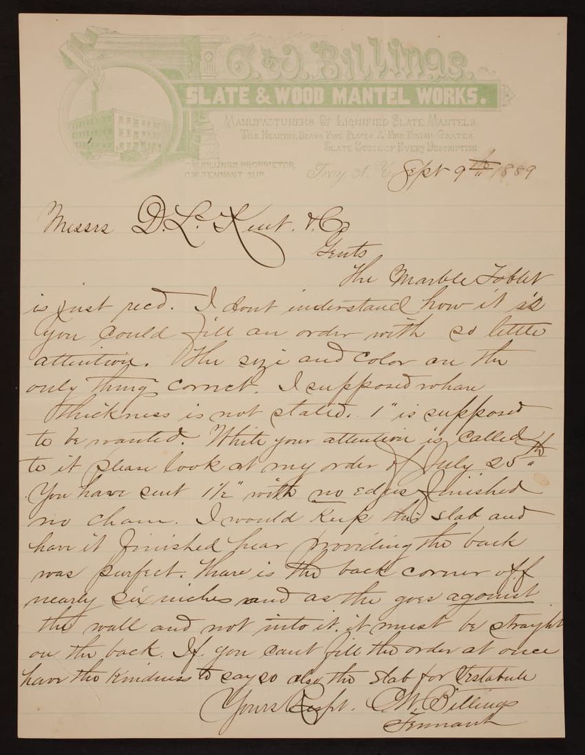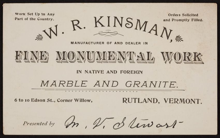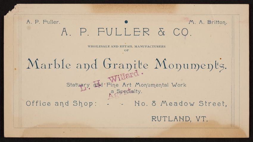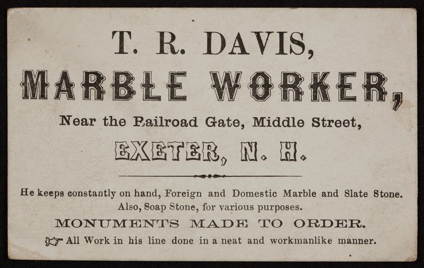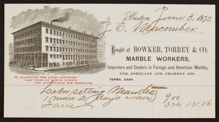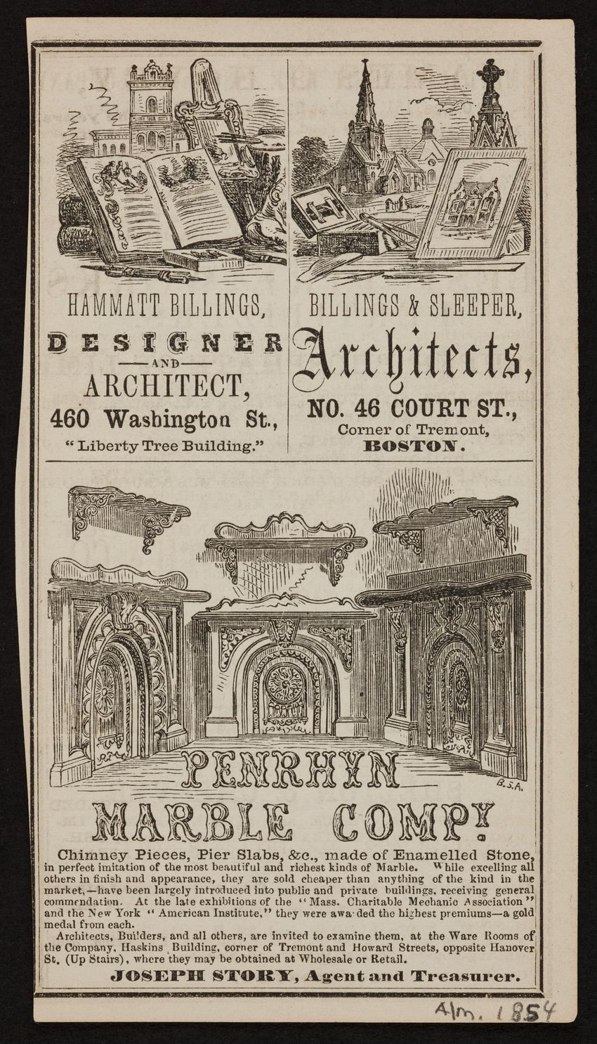 The firms advertised are Hammatt Billings on Washington Street, Billings & Sleeper on Court Street and the Penrhyn Marble Company on Tremont and Howard Streets.