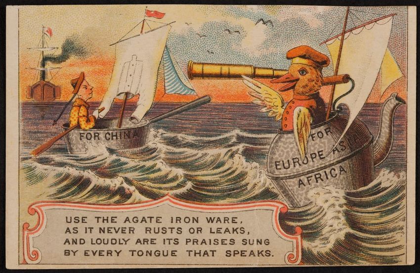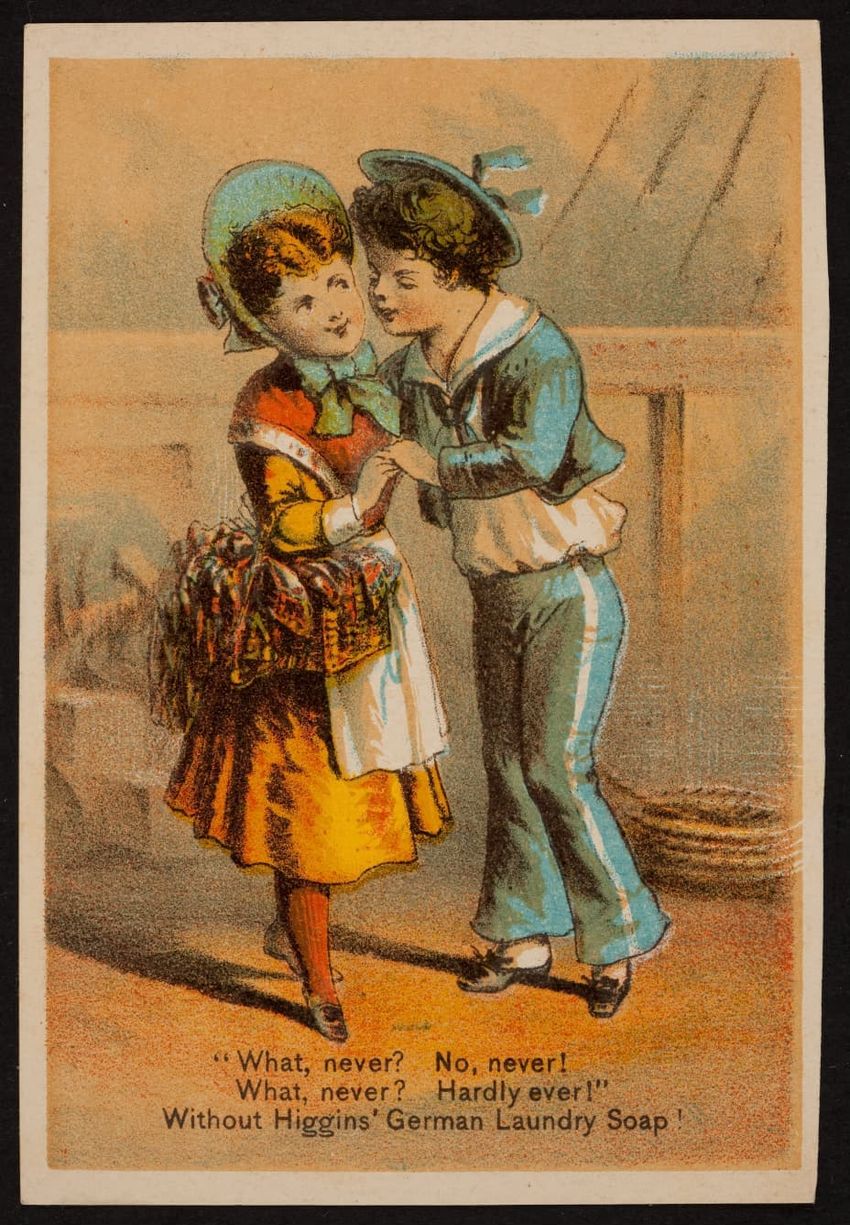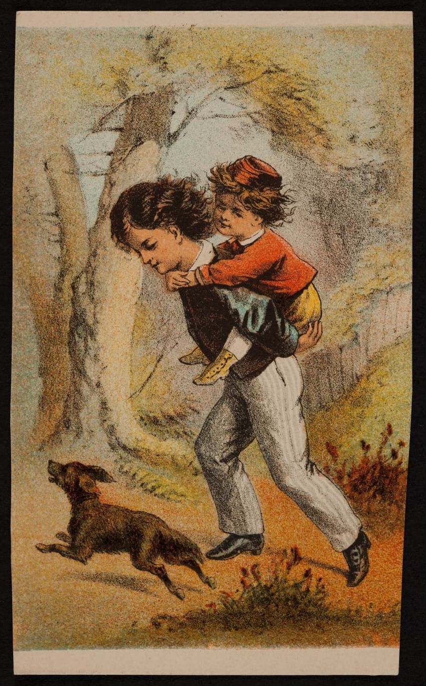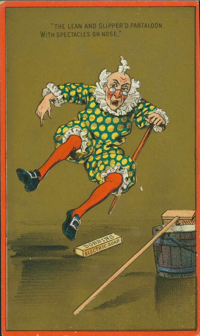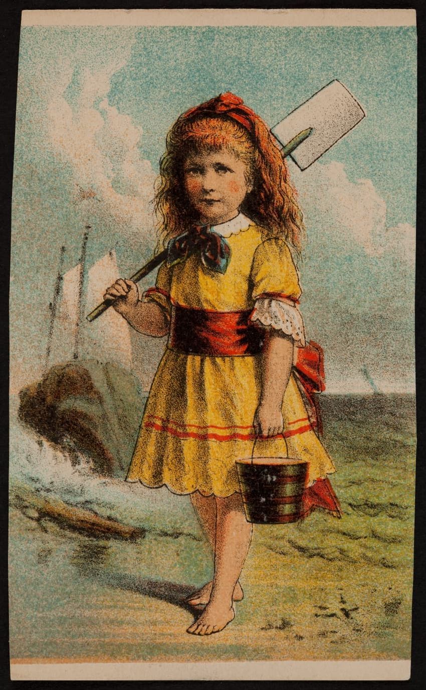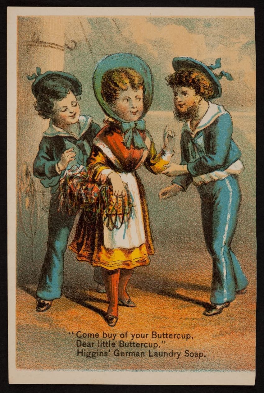 This trade card contains harmful language, imagery, and employs racist stereotypes.