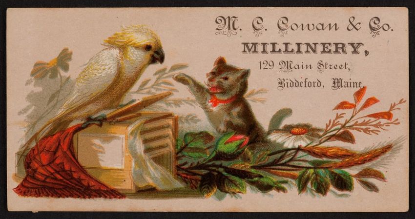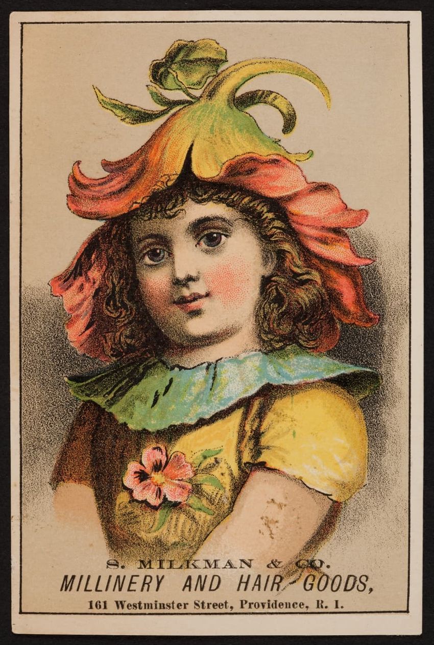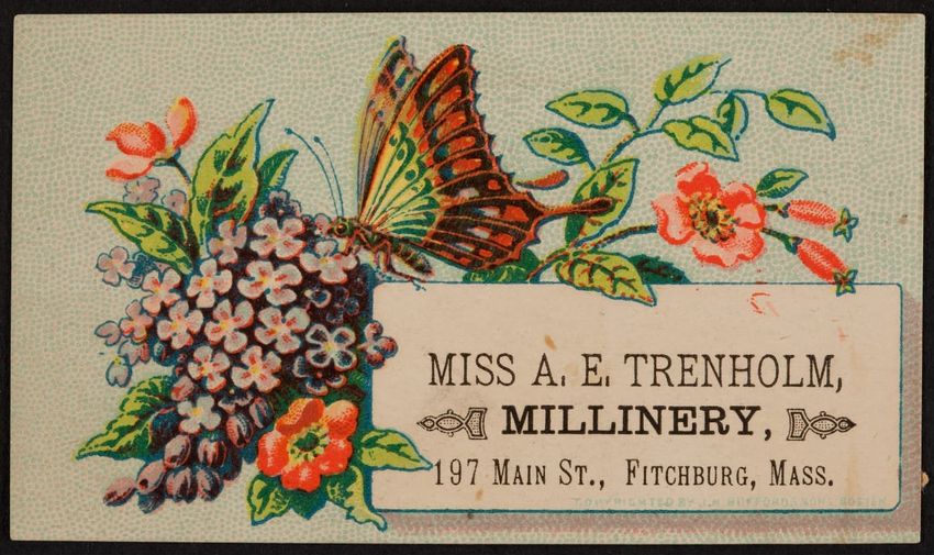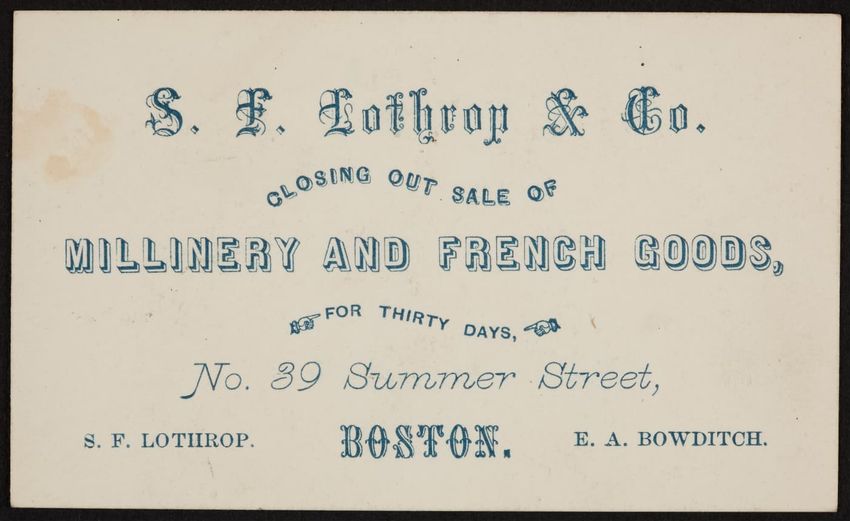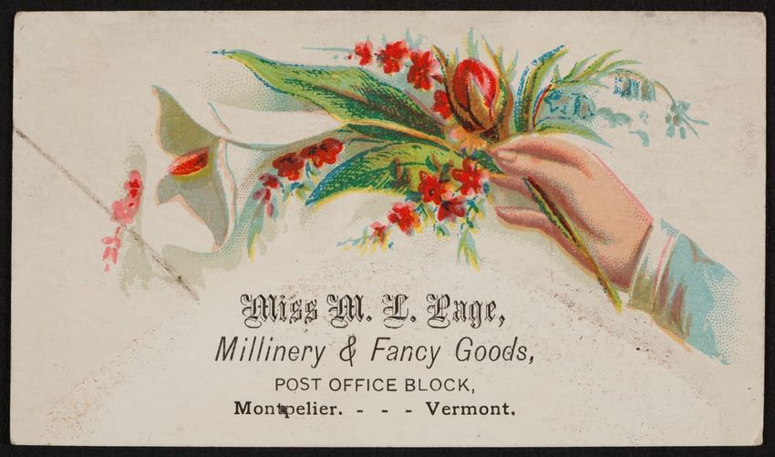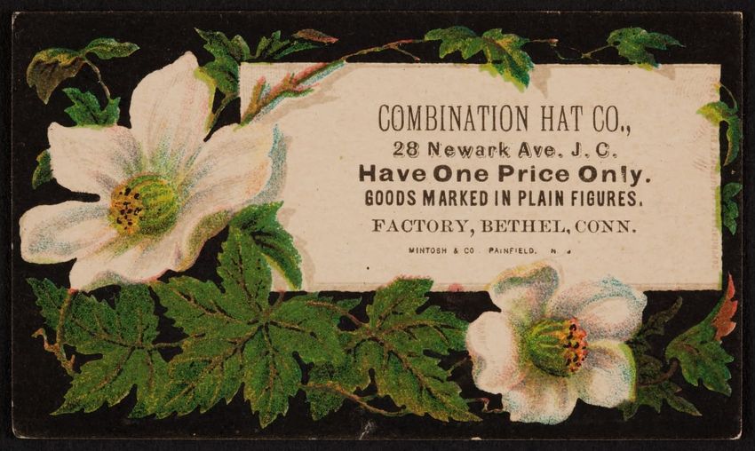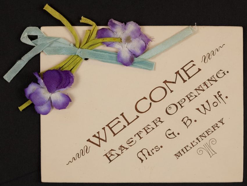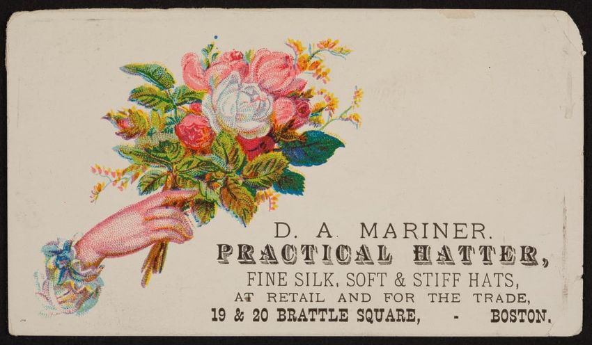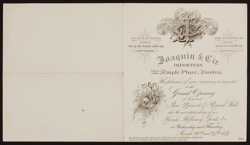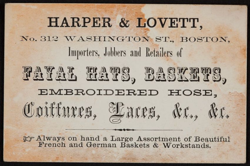 Harper & Lovett, an importer, jobber and retailer, carries embroidered hose, coiffures, laces and basket workstands. On the card verso is a handwritten statement reading "George the son of boustantine, grandson of Lord's day, who made a pilgrimage to Jerusalem."
