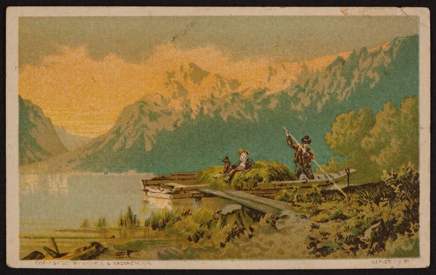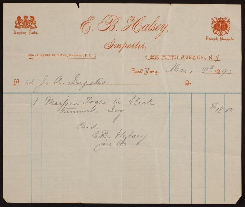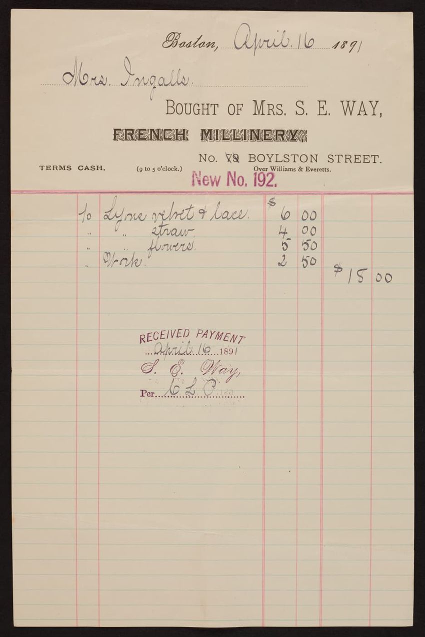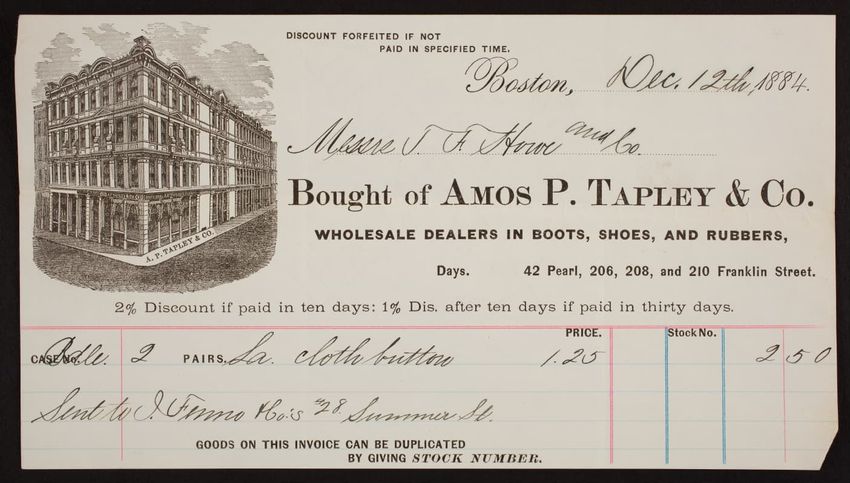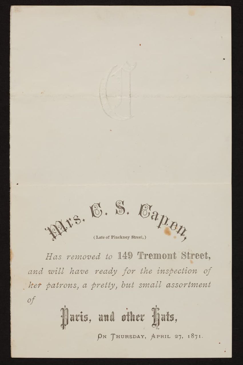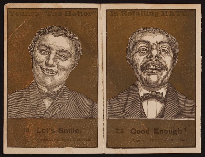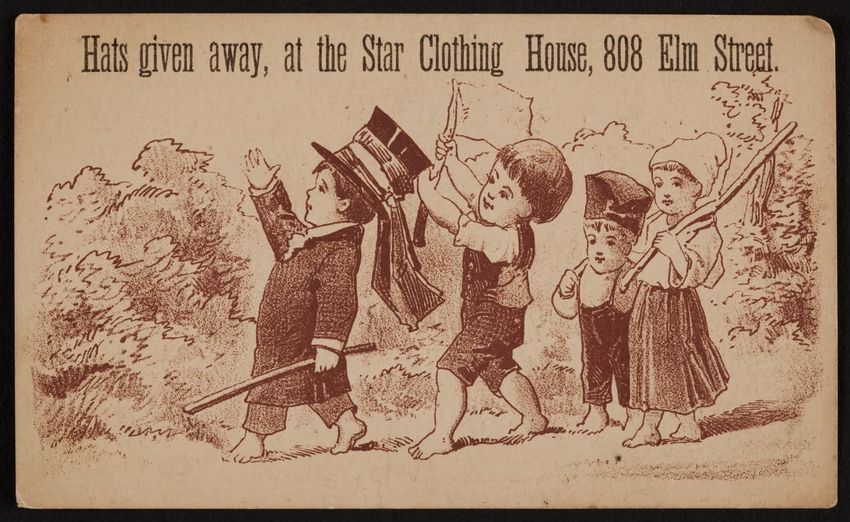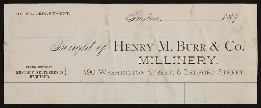 Harper & Lovett, an importer, jobber and retailer, carries embroidered hose, coiffures, laces and basket workstands. On the card verso is a handwritten statement reading "George the son of boustantine, grandson of Lord's day, who made a pilgrimage to Jerusalem."