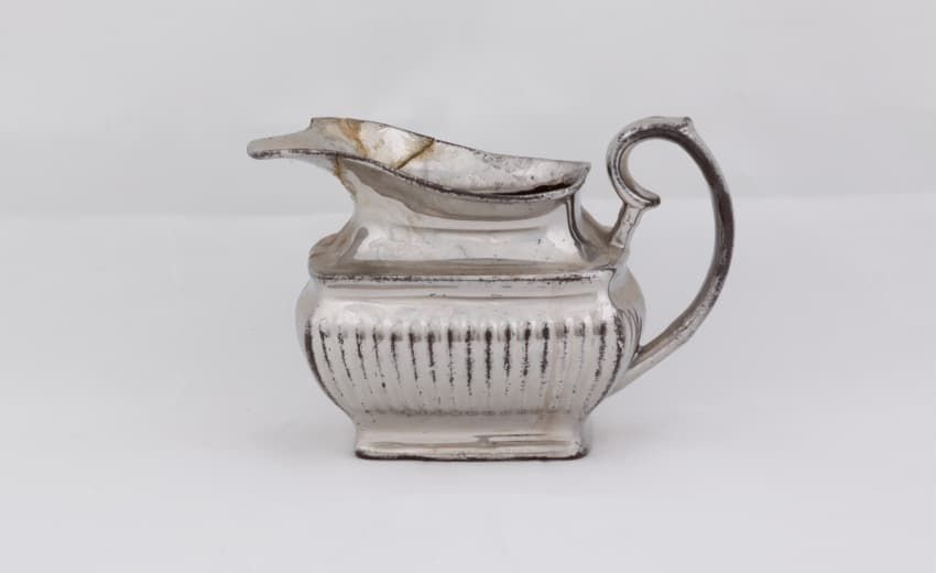 Three sprays of green, orange, and blue enamel flowers with gilt highlights around border; border around well: orange latticework and medallions, edged in blue and orange, of orange flowers; central image: orange flowers with green leaves and blue vine with gilt highlights; blue and gold garden fenc...