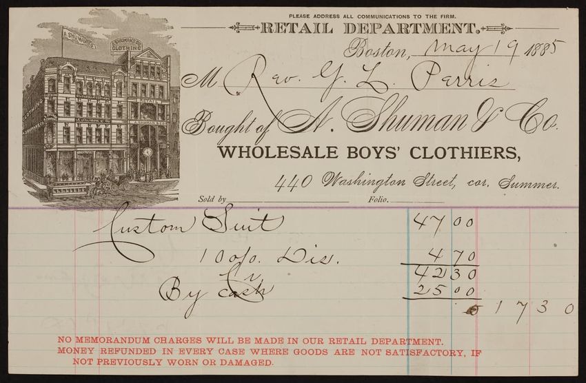 The Boston Uniform Company will provide custom tailoring to individual measurements. The business was established in 1898.