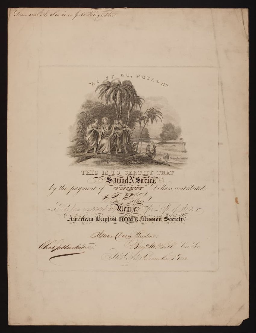 Portrait of the Rev. Sebastian Streeter. From print: "For a period of forty years he was the revered and beloved pastor of the First Universalist Church in Boston. His learning, his piety, and his christian demeanor, were conspicuous, and distingiushed him as a 'FATHER', in the Israel to which he...