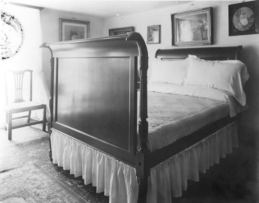 Interior photograph of a bedroom in the Loring House, Loring St., Weston, Mass.