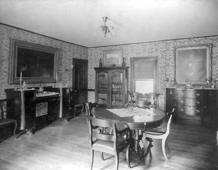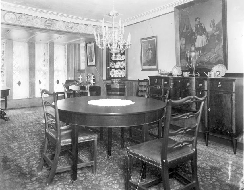 Interior photograph of a dining room in an unidentified residence in Weymouth, Mass.