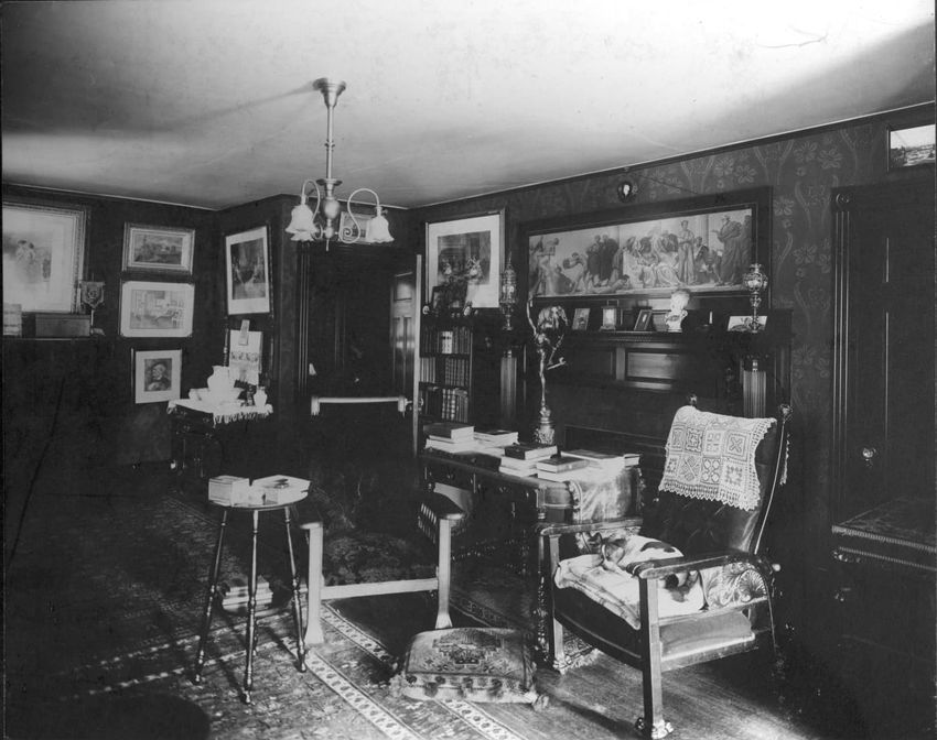 Interior photograph of the writing room in the Loring House, Loring St., Weston, Mass.
