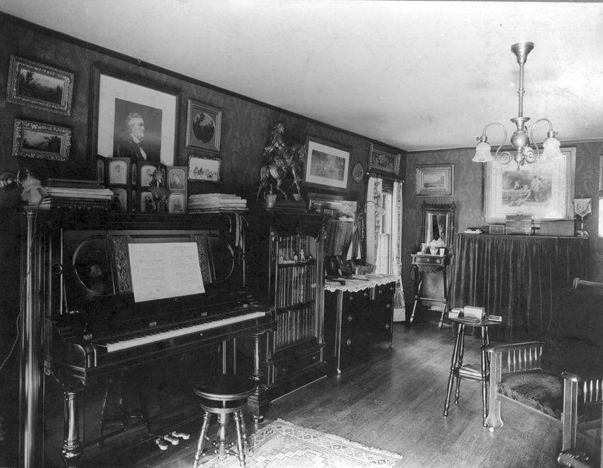 Interior photograph of the music room in the Loring House, Loring St., Weston, Mass.