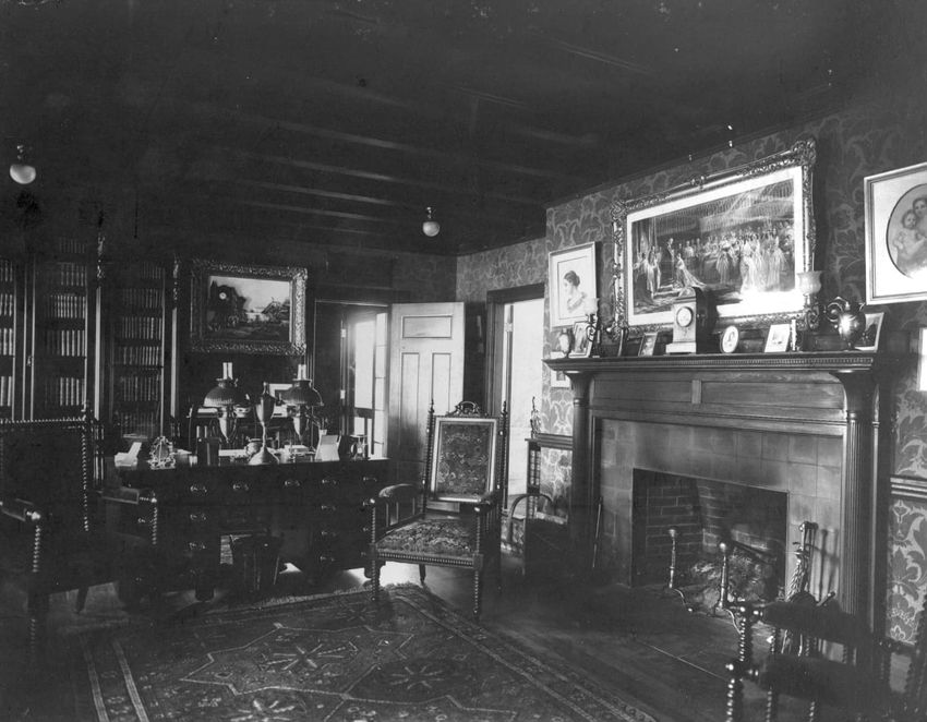 Interior photograph of the library in the Loring House, Loring St., Weston, Mass.