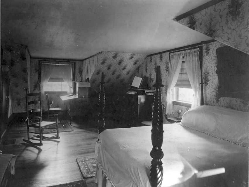 Interior photograph of the "small" bedroom in the Loring House, Loring St., Weston, Mass.