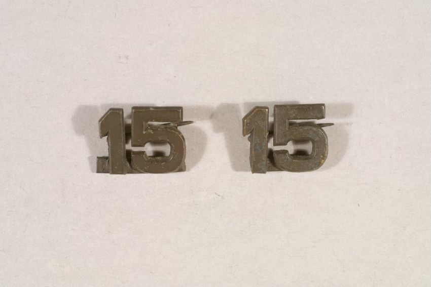 Jet bar brooch. Two lateral jet pieces with five overlapping jet segments.