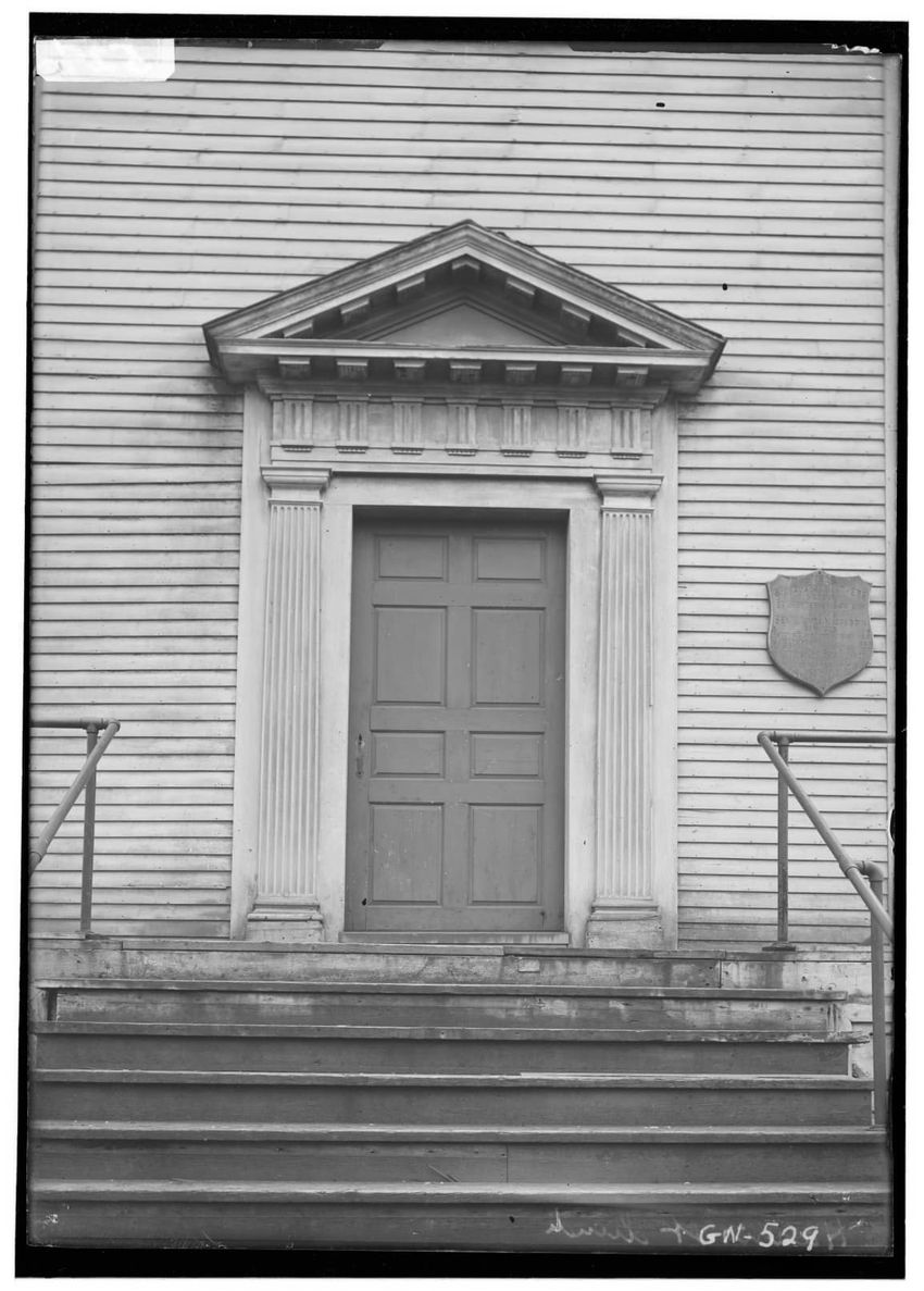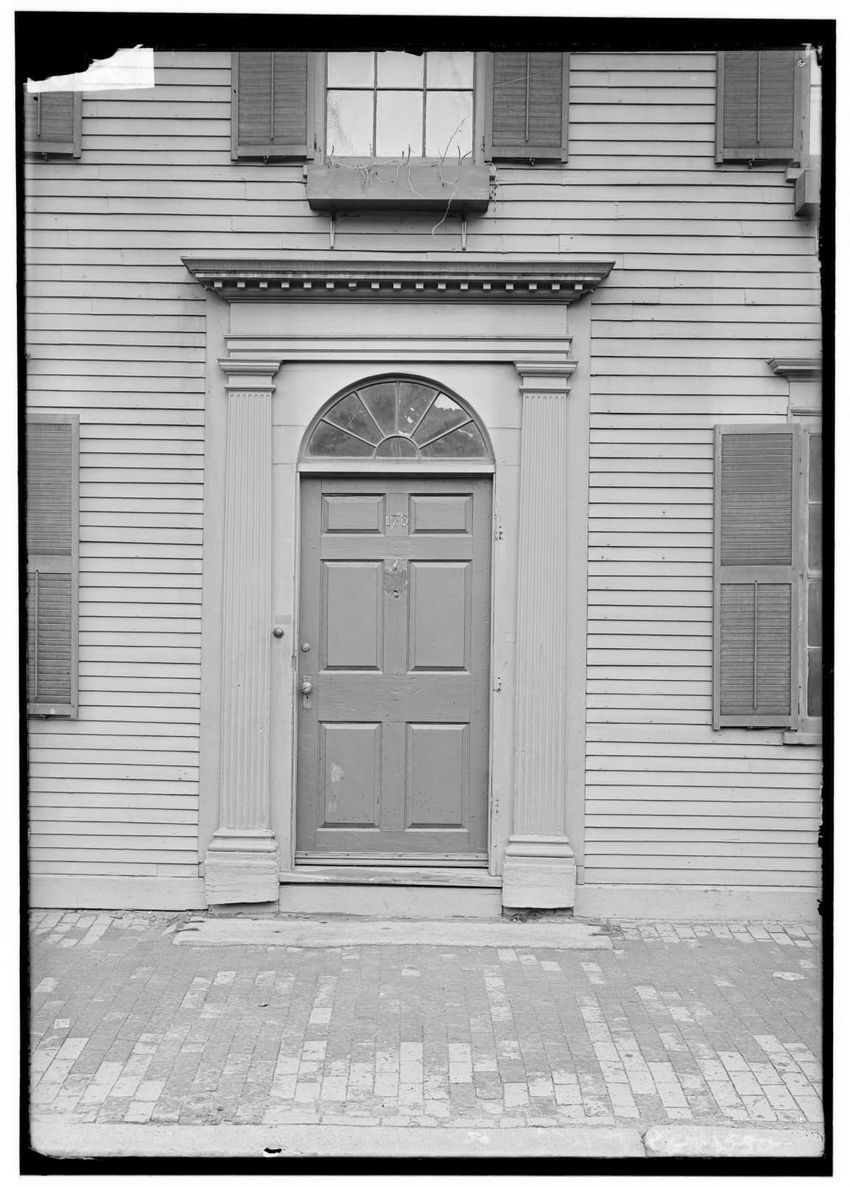 The image depicts a row of brick buildings on State Street, below Essex Street, in Newburyport, Massachusetts. Visible businesses include "W.B. Morss," "Albion Hall - Ambrotype Saloon," and "G.W. Clark." Signs for a photographer, "H.P. Macintosh," and a business named "L.N. Moulton" are also present...