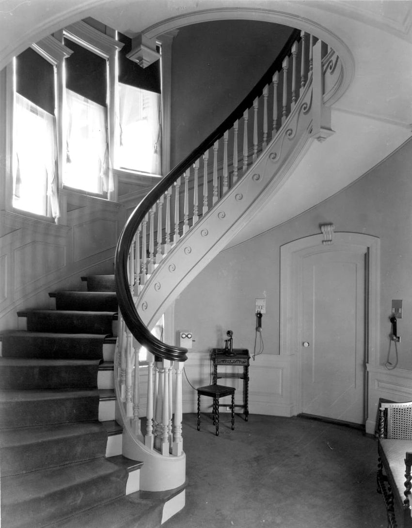 Interior photograph of a stairwell in the Governor Alvan T. Fuller House, Little Boar's Head, North Hampton, N.H..