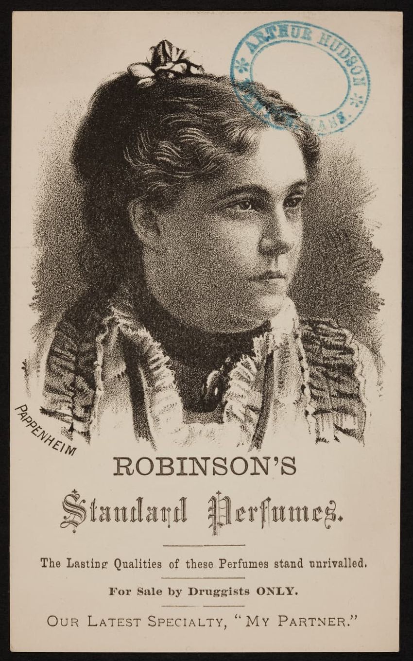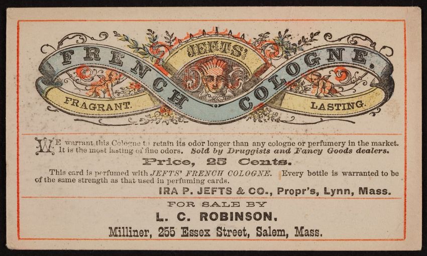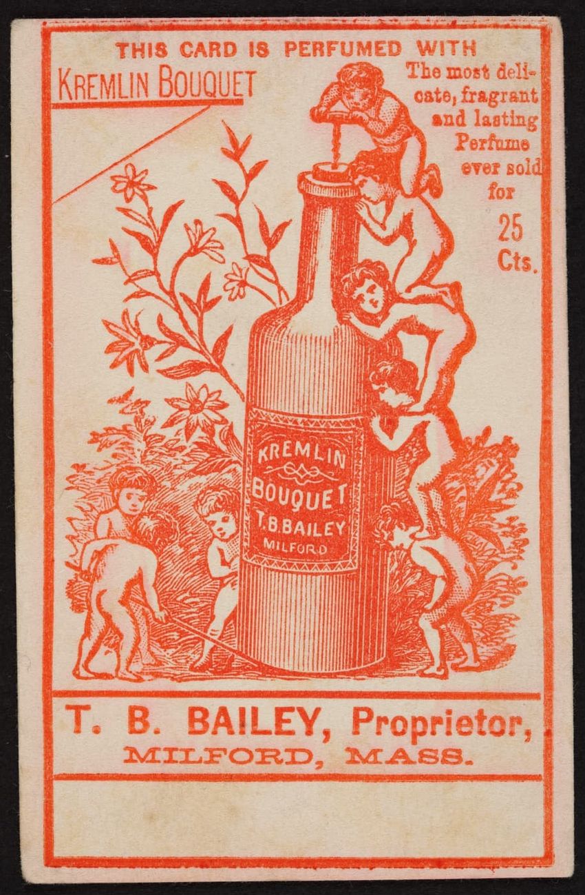 The caption reads "Guaranteed to restore the hair to bald heads and to make it grow thick, long and soft." The card verso describes the product properties and has a testimonial from the editor of "Scientific American." Barry's was established in 1801.