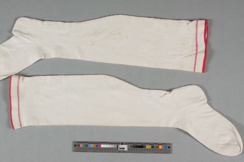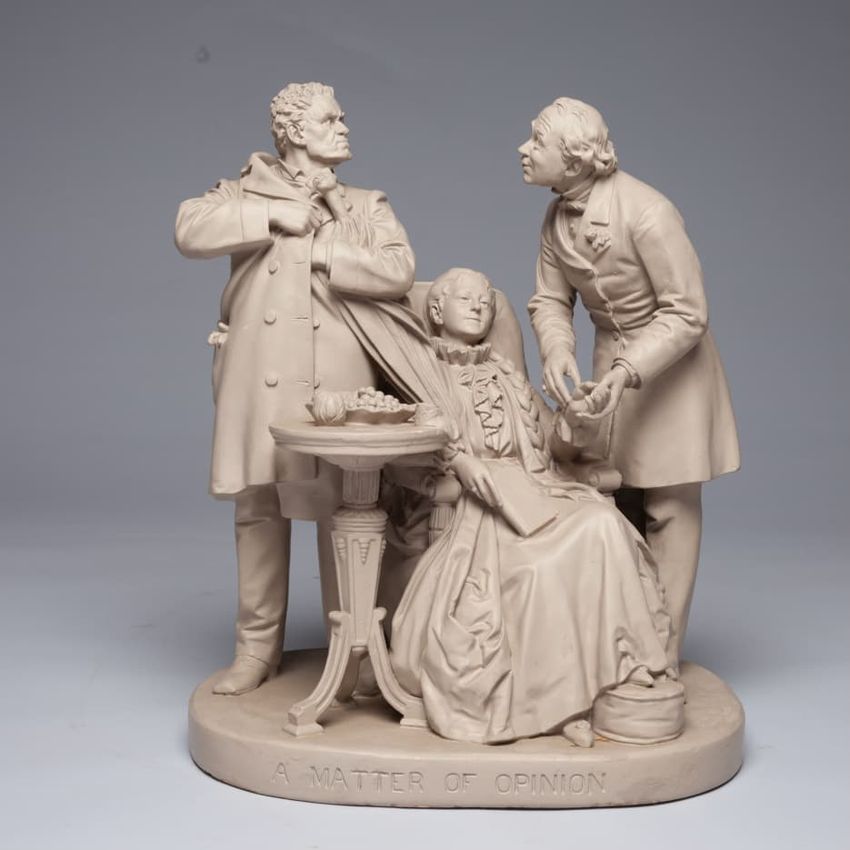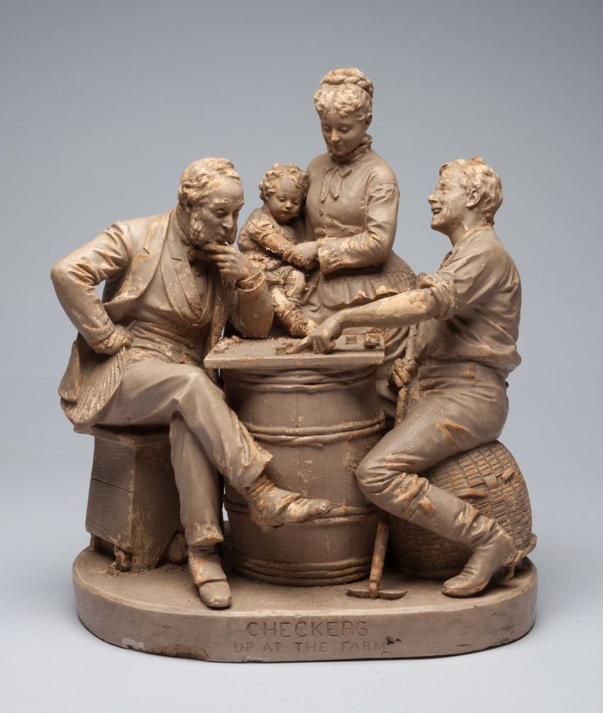 Small, footed earthenware bowl with "flow blue" transfer-printed pattern "Scinde." Floral border around interior rim. Repeating scene of flowering tree surrounded by water, a figure carrying a flag toward a pagoda on exterior and interior basin.