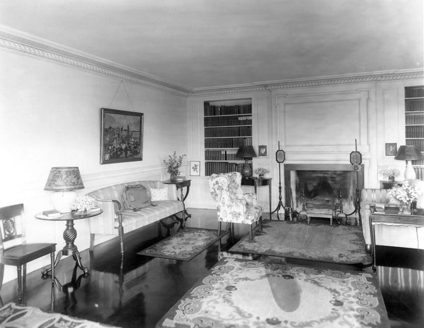 Interior photograph of the reception room in the Durant Guest House, Wellesley, Mass.