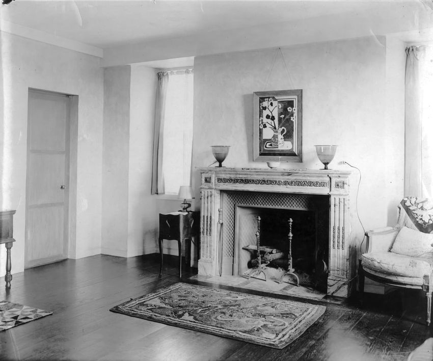 Interior photograph of a fireplace in the John L. Saltonstall House, Topsfield, Mass.
