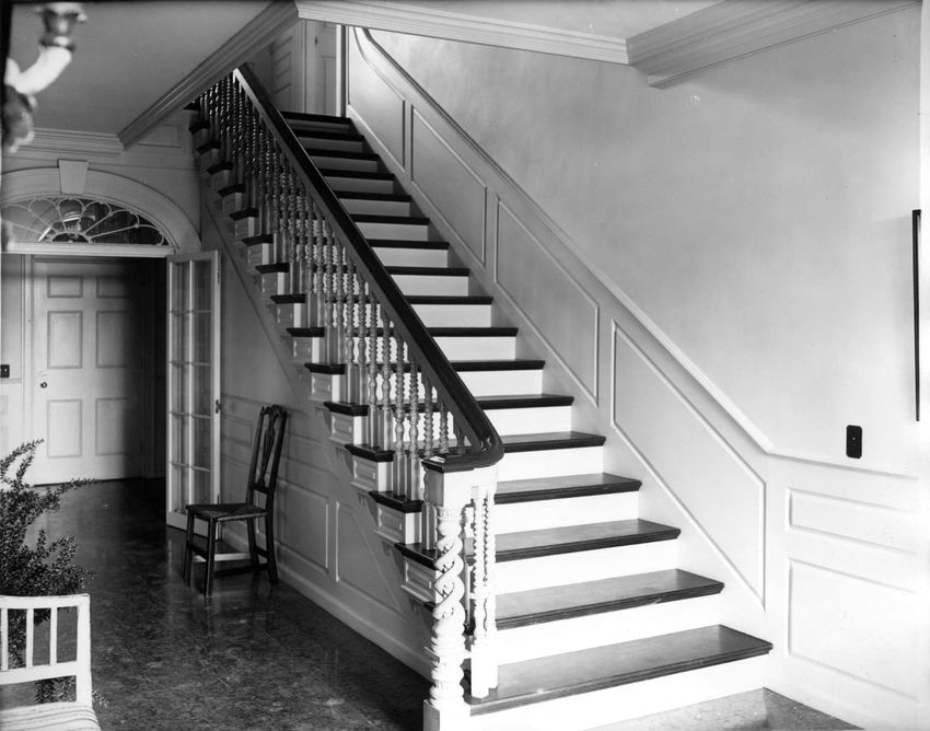 Interior photograph of a stairwell in the John L. Saltonstall House, Topsfield, Mass.