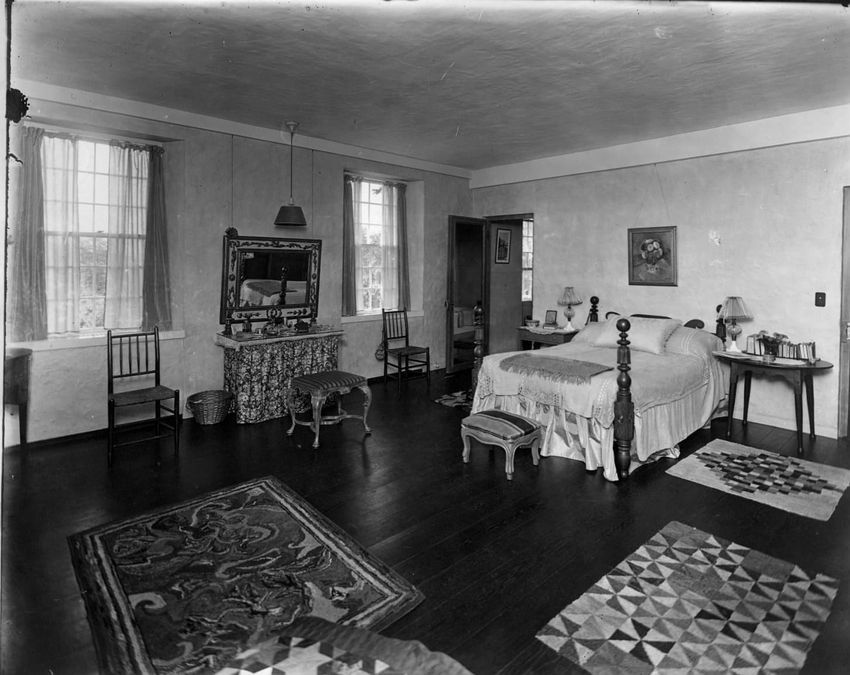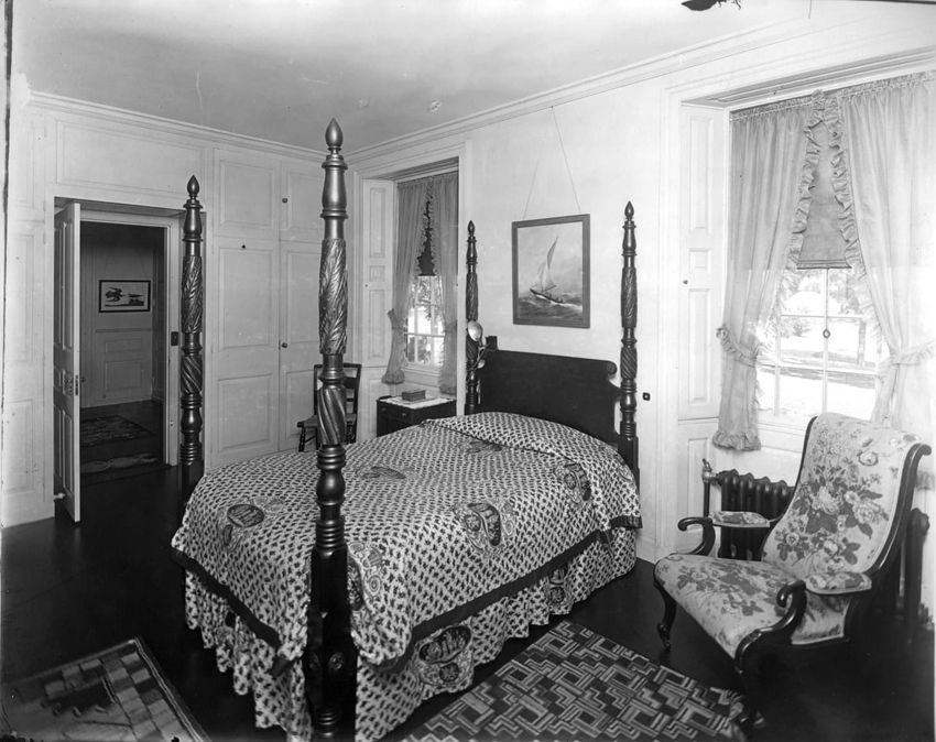 Interior photograph of a bedroom in the John L. Saltonstall House, Topsfield, Mass.