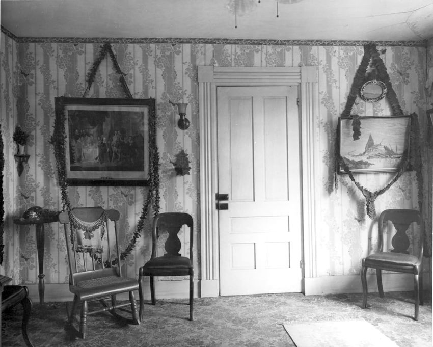 Interior photograph of the parlor in the Fearing House, Fearing Hill, South Wareham, Mass.