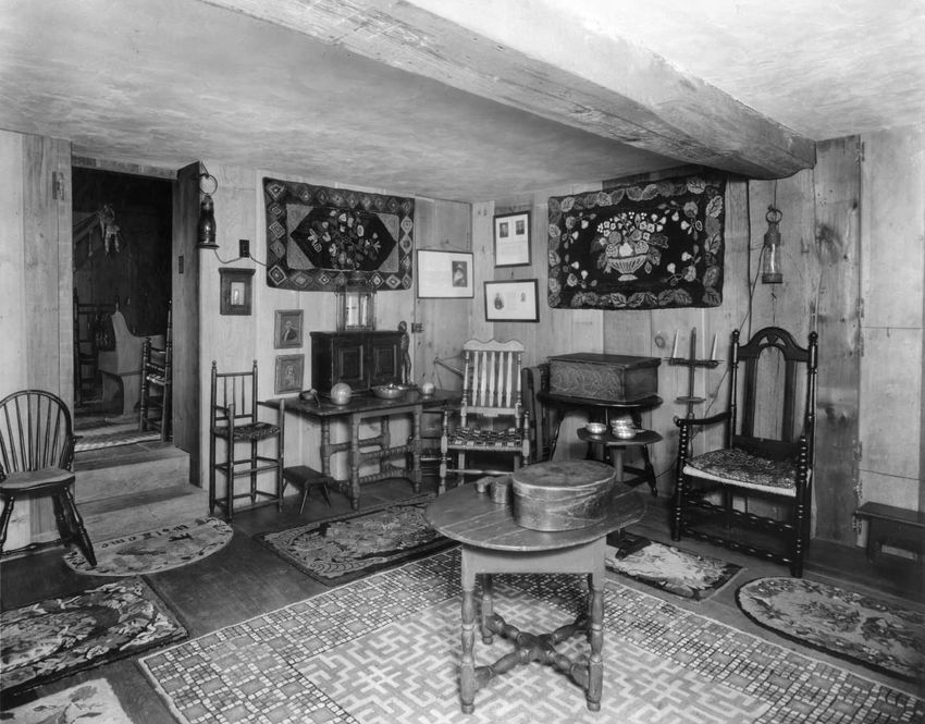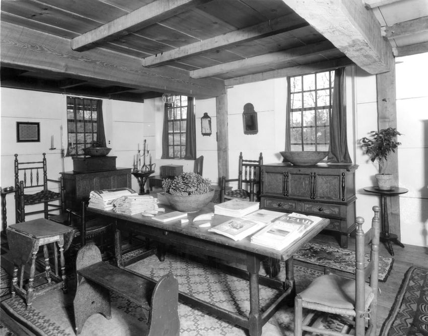 Interior photograph of the parlor (living room) in the Abel Heard House, Wayland, Mass.