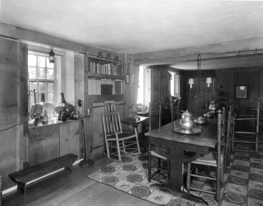 Interior photograph of the dining room in the John L. Saltonstall House, Topsfield, Mass.