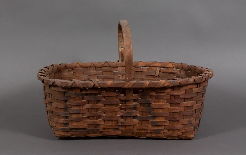 Alphabet and numbers/verse sampler; squarish, natural linen ground; silk or cotton thread; cross stitch, rococo, satin, fern stitch, stem, outline, lang and short satin stitch, whip stitch; alphabets at top; verse at bottom with two columns on either side; floral arc above and flowers and trees belo...